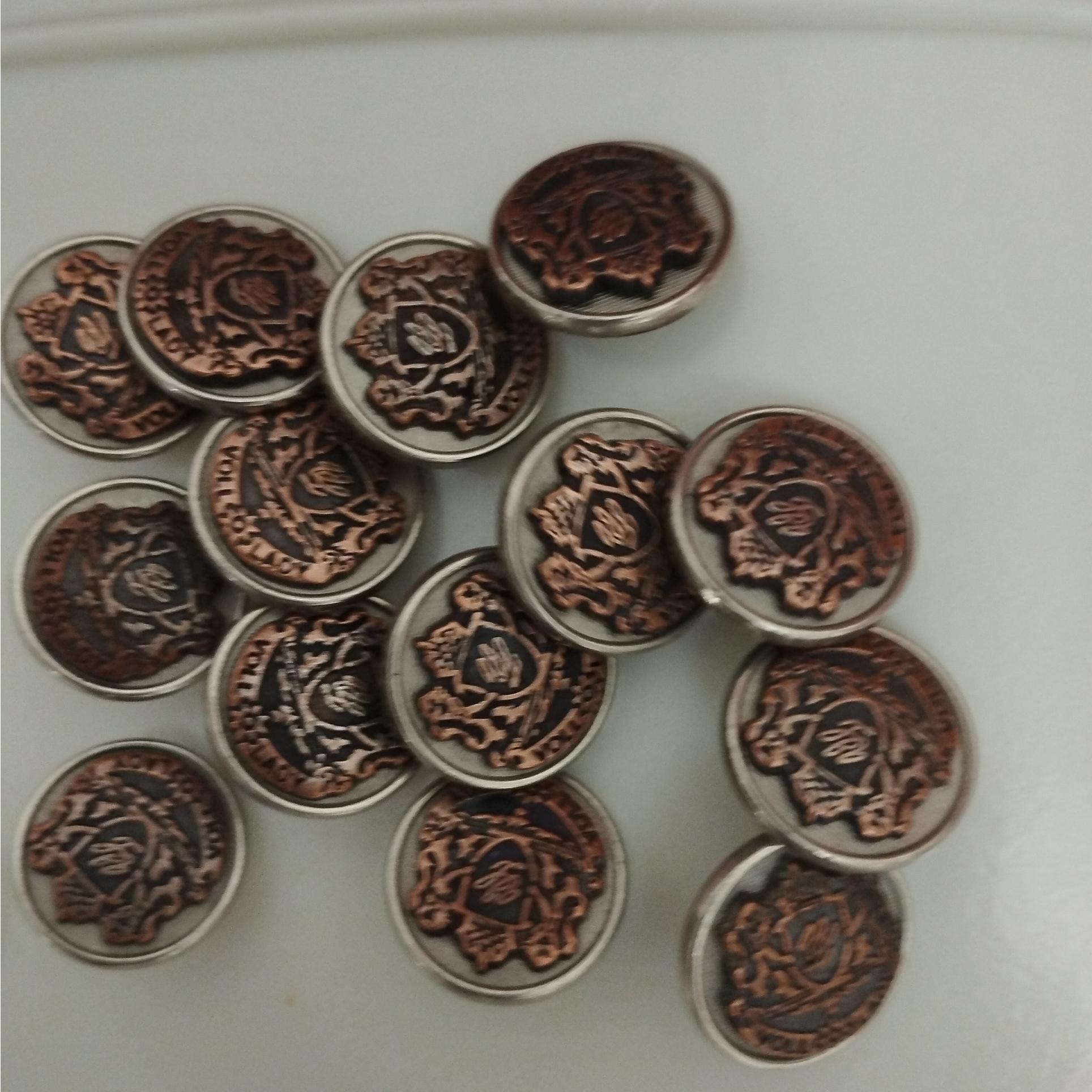 23 عدد دگمه فلزی دو رنگ که 9 عدد آن بزرگتر و 14 عدد آن کوچکتر هستن