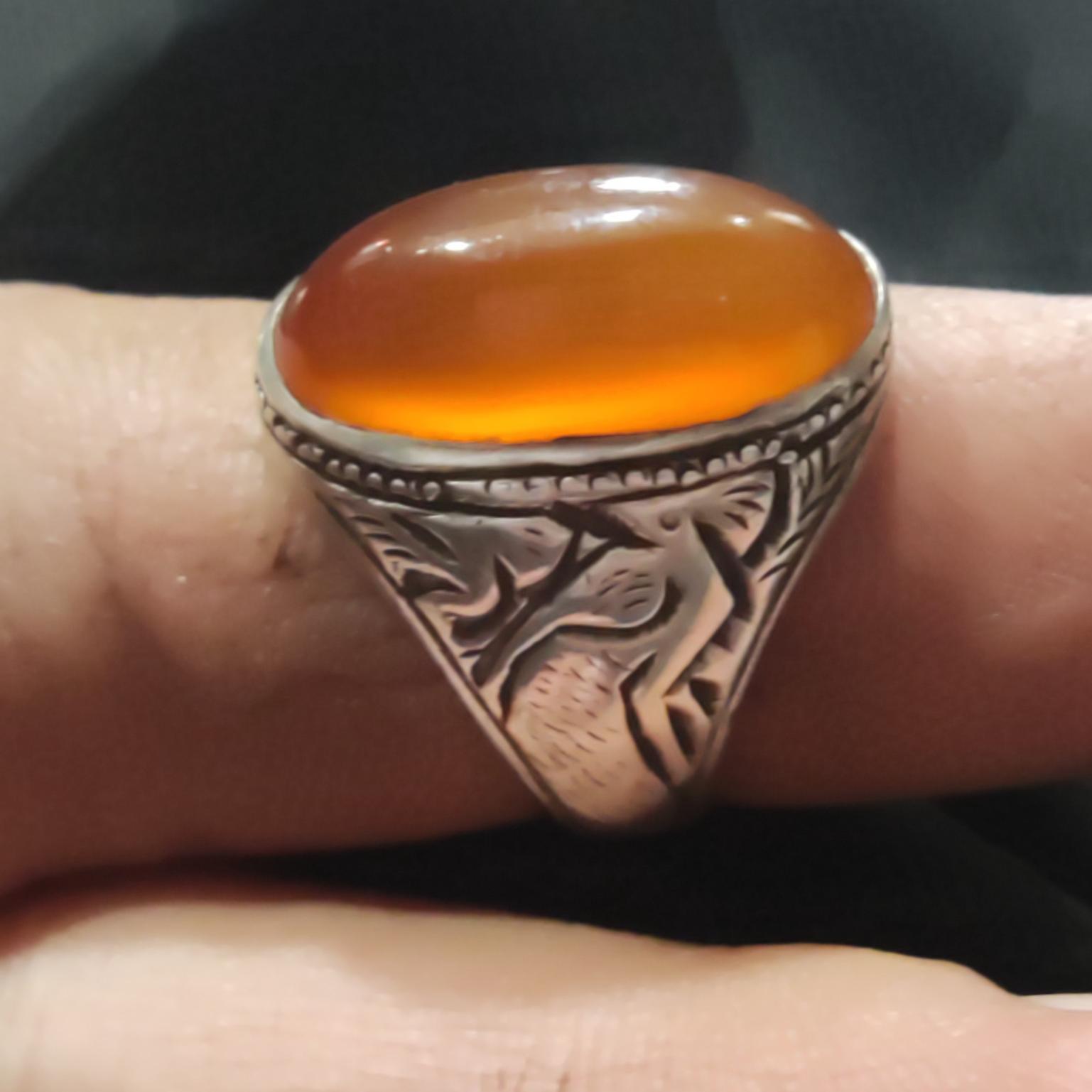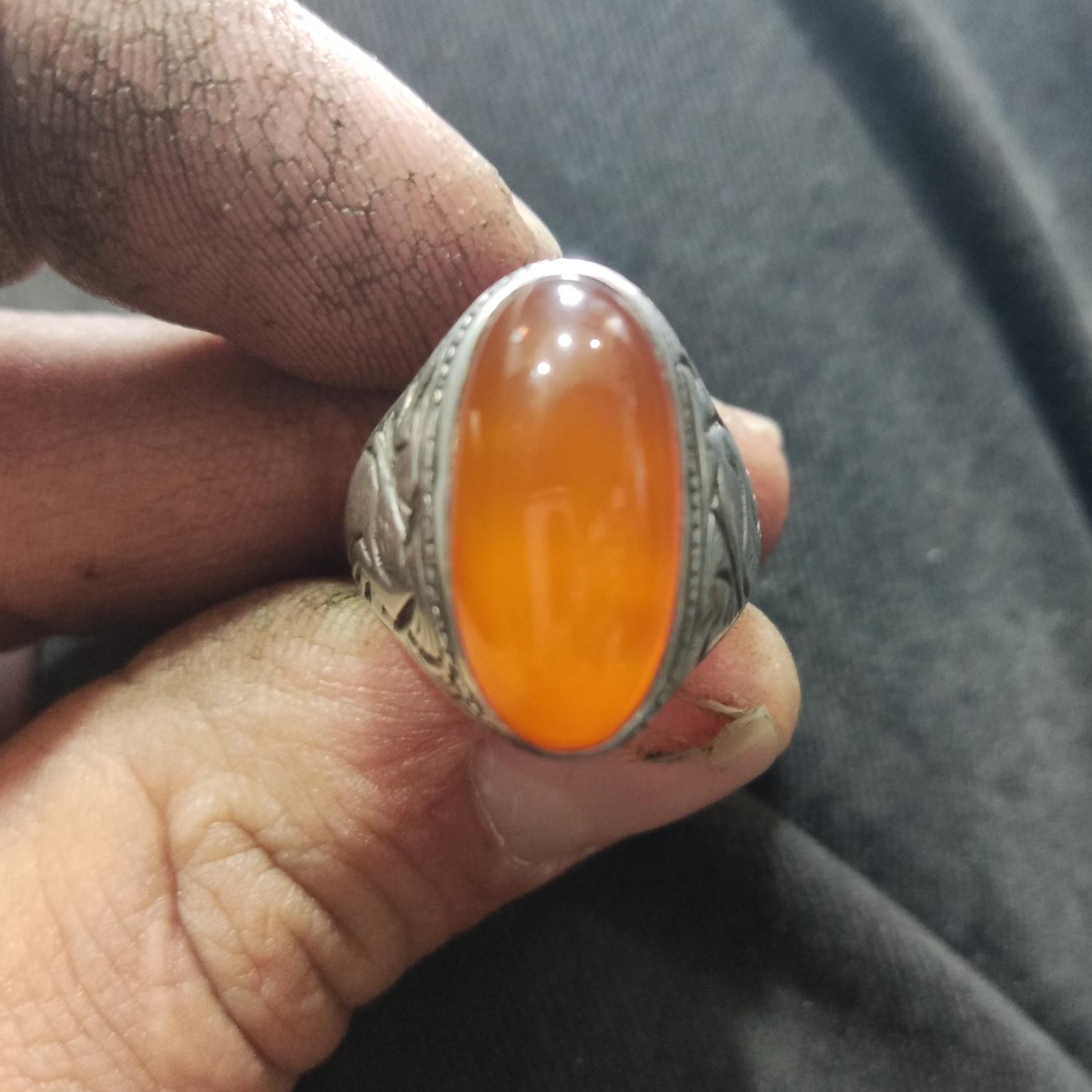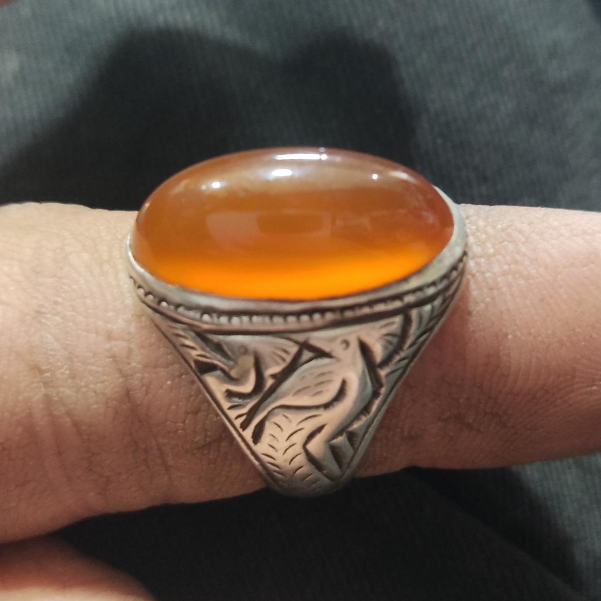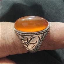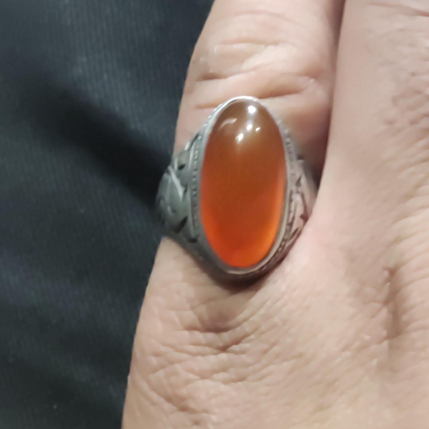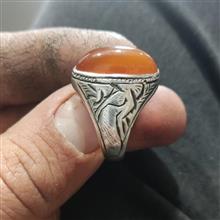 انگشتر عقیق پرتغالی قدیمی قلمزنی