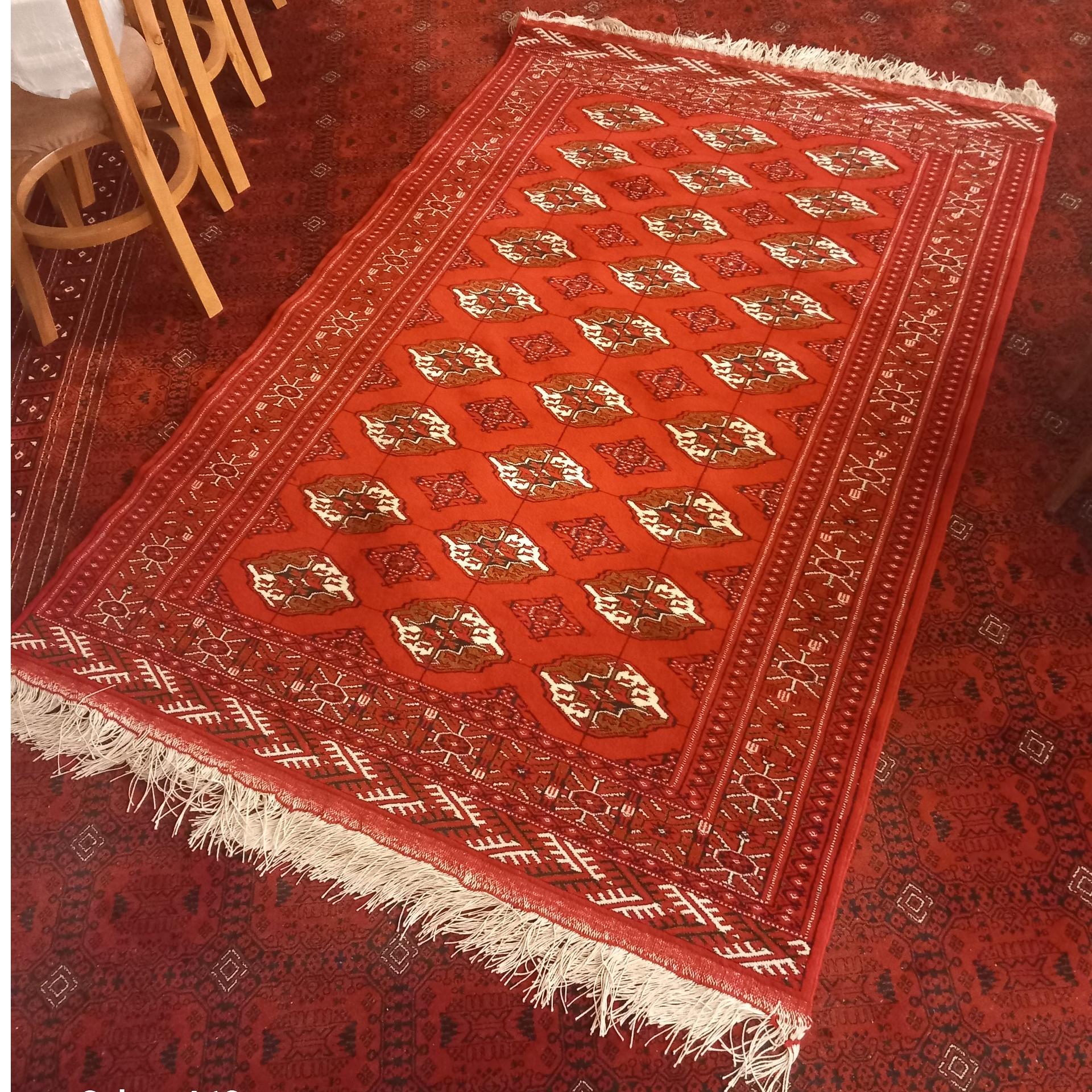 قالیچه دستبافت ترکمنی بسیار زیبا و نفیس/ سالهای سال است که بدون استفاده و نو نگهداری شده/ لول شده در کاور مخصوص قالیچه های دستبافت سالهاست که نگهداری شده/ ابعاد: طول: 2متر عرض: 1متر و 30سانت/