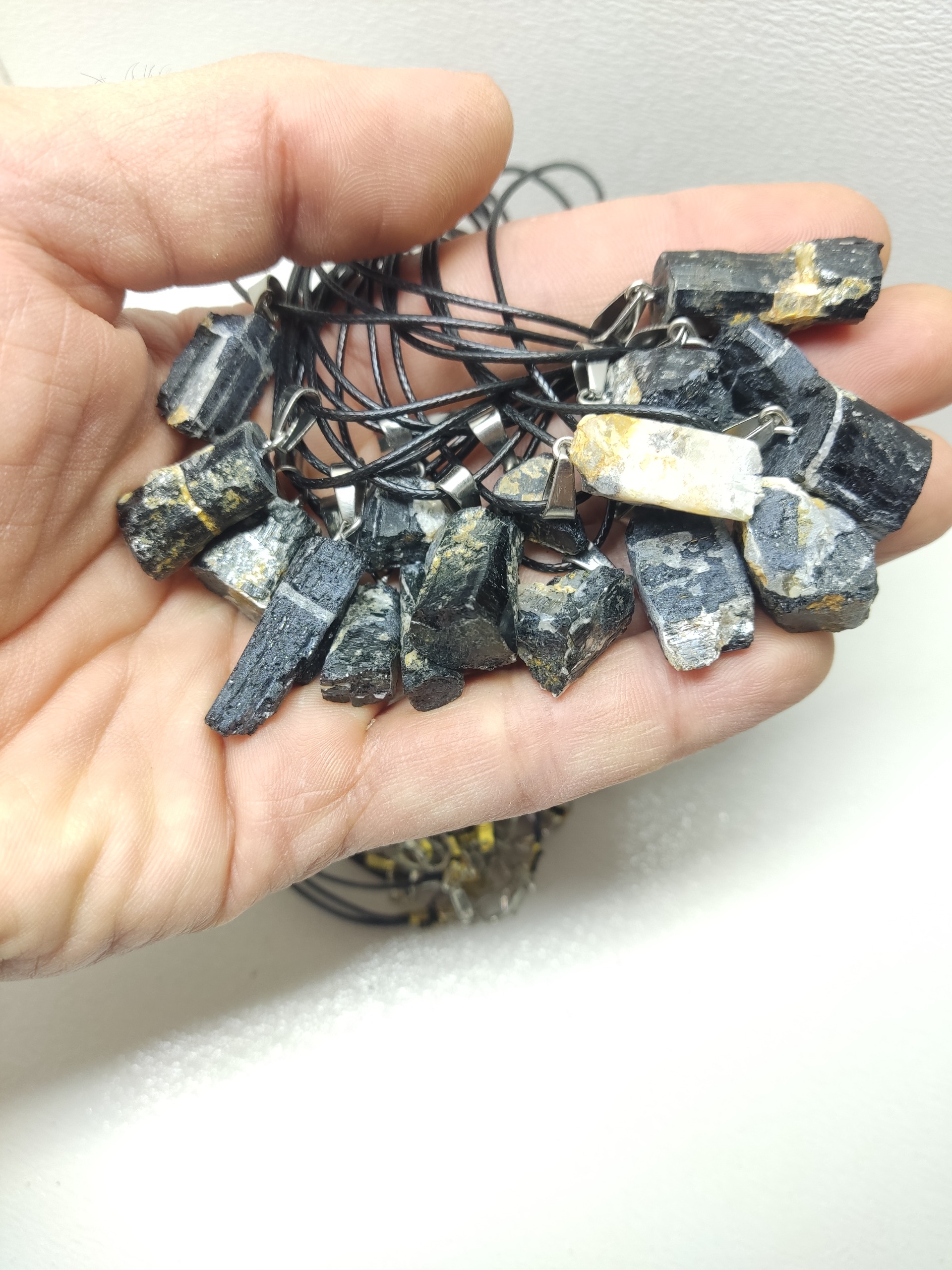 گردنبند های تورمالین سیاه همراه با نخ چرمی ارسال میشوند.