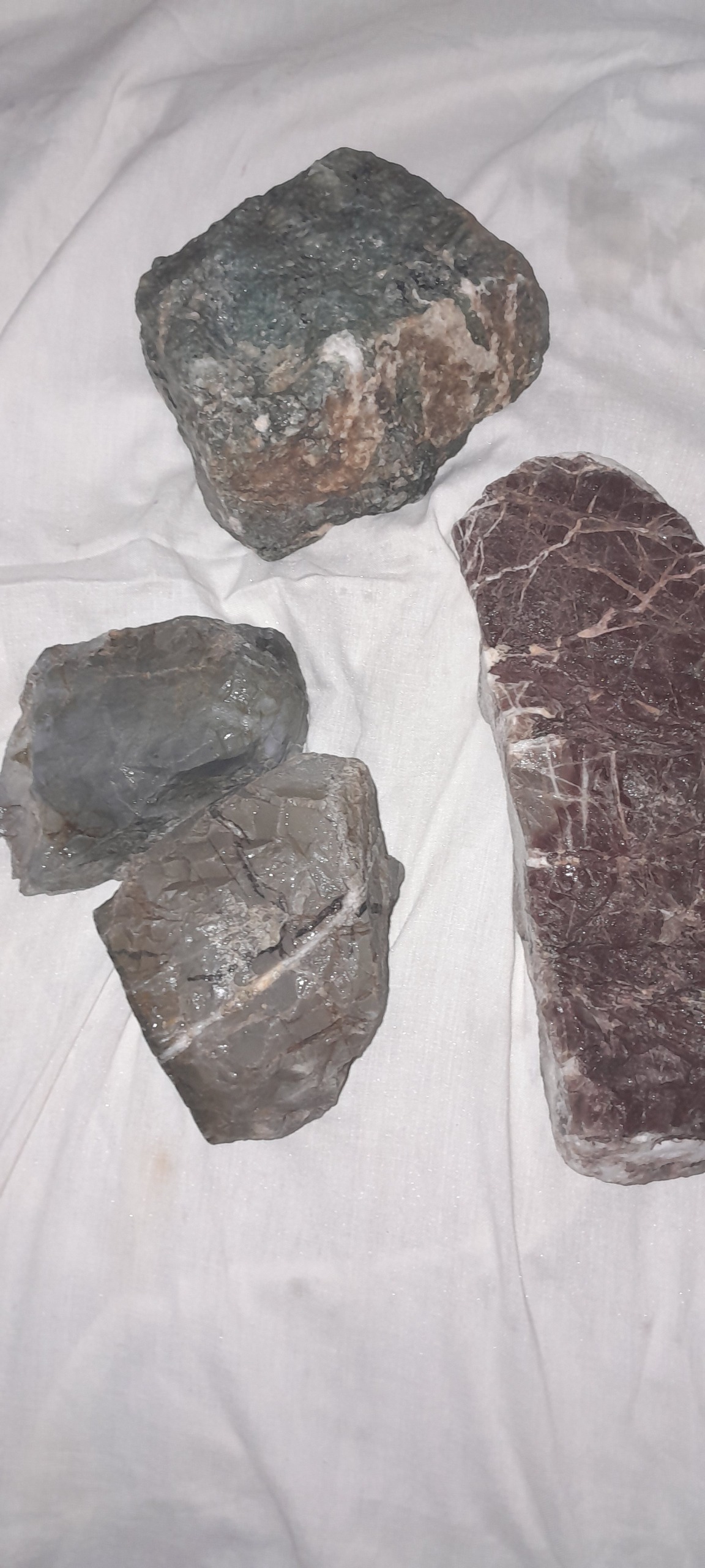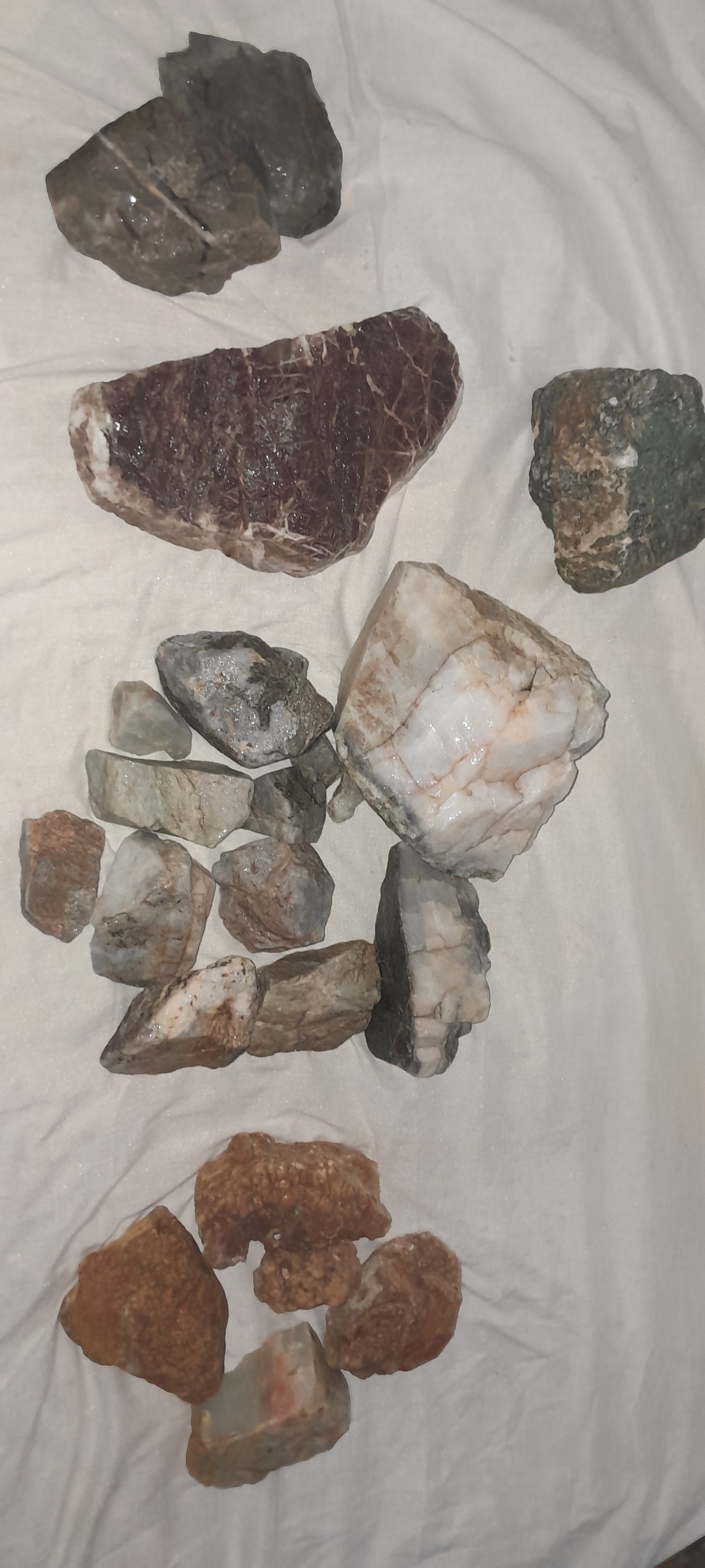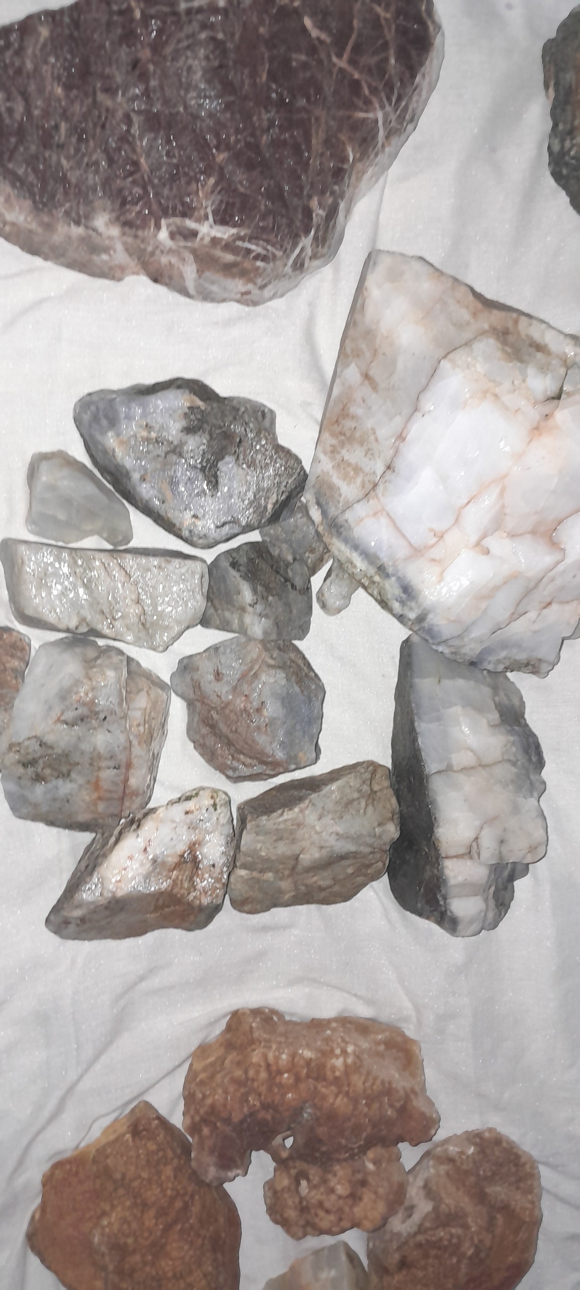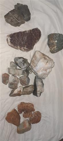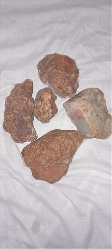 راف خام عقیق ،سفید و طاولی ،قرمز و ....به وزن 19/400 کیلو گرم .عقیق طوسی در دو نوع یا یشم طوسی اوپال.