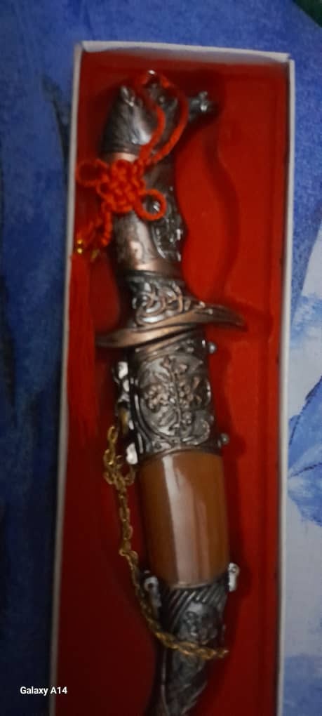 چاقوی چینی آکبند با جعبه و غلاف تزئینی و دکوری