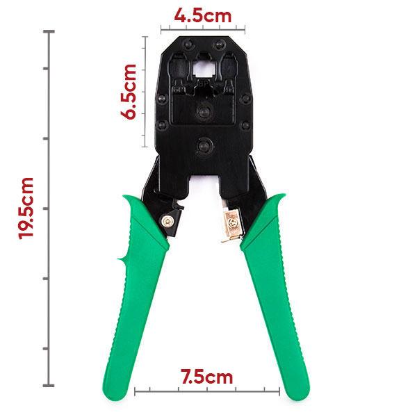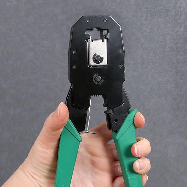 این یک آچار شبکه سه در یک است که در صنعت شبکه استفاده می شود. با استفاده از این ابزار می توانید دو کابل شبکه یا کابل تلفن را به هم متصل کنید. می توان از آن بر روی کانکتورهای RJ-45، RJ-11 و RJ-12 استفاده کرد. همچنین با یک ابزار نوار زرد کوچک همراه است که با یک تیغه محتاط برای برش ژاکت پی وی سی کابل ها در اندازه های مختلف ارائه می شود.