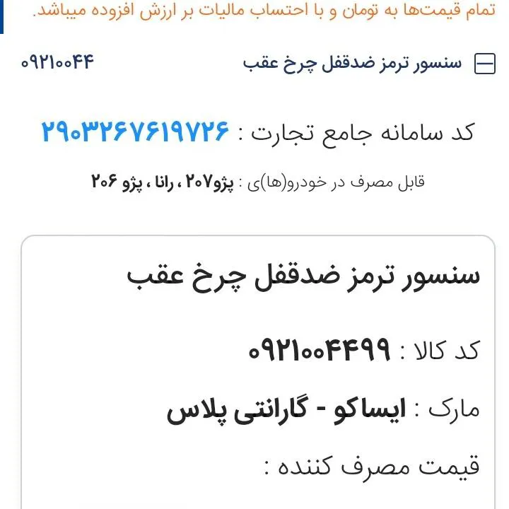 سنسور ترمز ضد قفل (ABS) چرخ عقب رانا و 206 و 207 اصلی ایساکو اورجینال