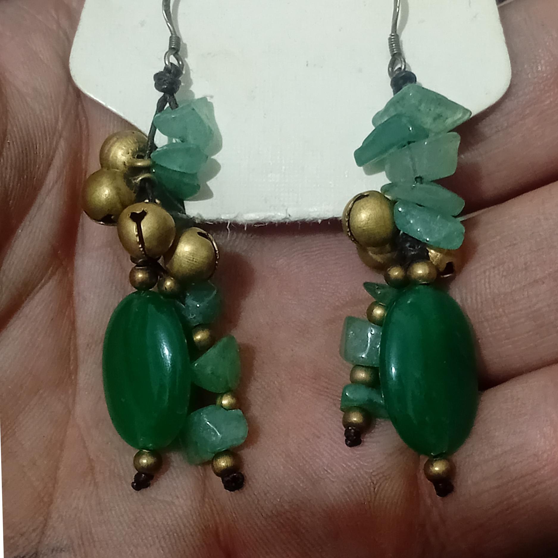 گوشواره طبیعی با سنگهای راف زمرد و گل سنگ جید