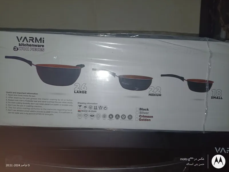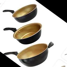 وک سه تایی طلایی وارمی شامل یک تابه بزرگ ته گرد دو دسته سایز 26مخصوص مهمانی و یا تعداد نفرات بالا ویک تابه متوسط تک دسته سایز 22 مخصوص تعداد نفرات کمتر و یا پخت برنج هم میشود استفاده کرد ویک تابه کوچک سایز18 مخصوص تهیه صبحانه یا پخت های کوچک که این مجموعه سه تایی وسیله بسیار کارآمد و کاربردی مفید برای آشپزی و پخت و پز و گرم کردن غذا میباشد و طوری طراحی شده که میتوان غذا را در آن غلطاند و یا به بالا پرتاب کرد و خیلی سریع تر از سایر ظروف غذا در آن پخته ویا گرم میشود و گرما بصورت یکنواخت به تمام نقاط تابه میرسد با رنگ طلایی شیک و زیبا قیمت در فروشگاه وارمی 1990000تومان میباشد (قیمت زیر قیمت فروشگاه)