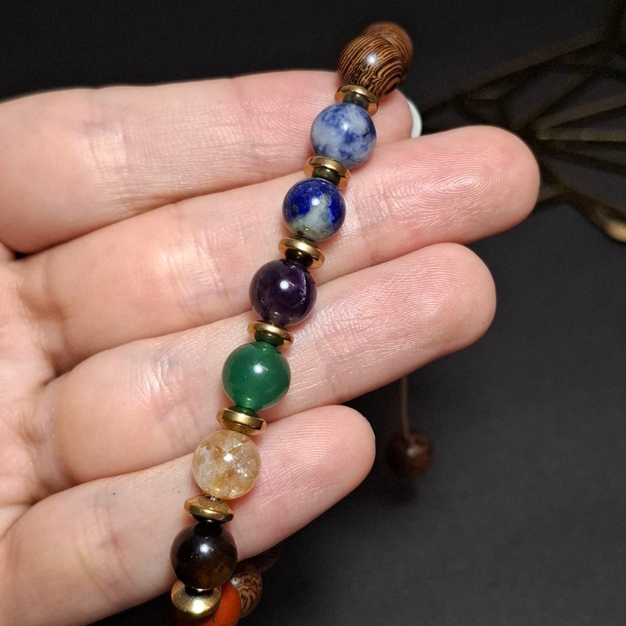 دستبند با مهره های سنگ فلورین و حدید معدنی