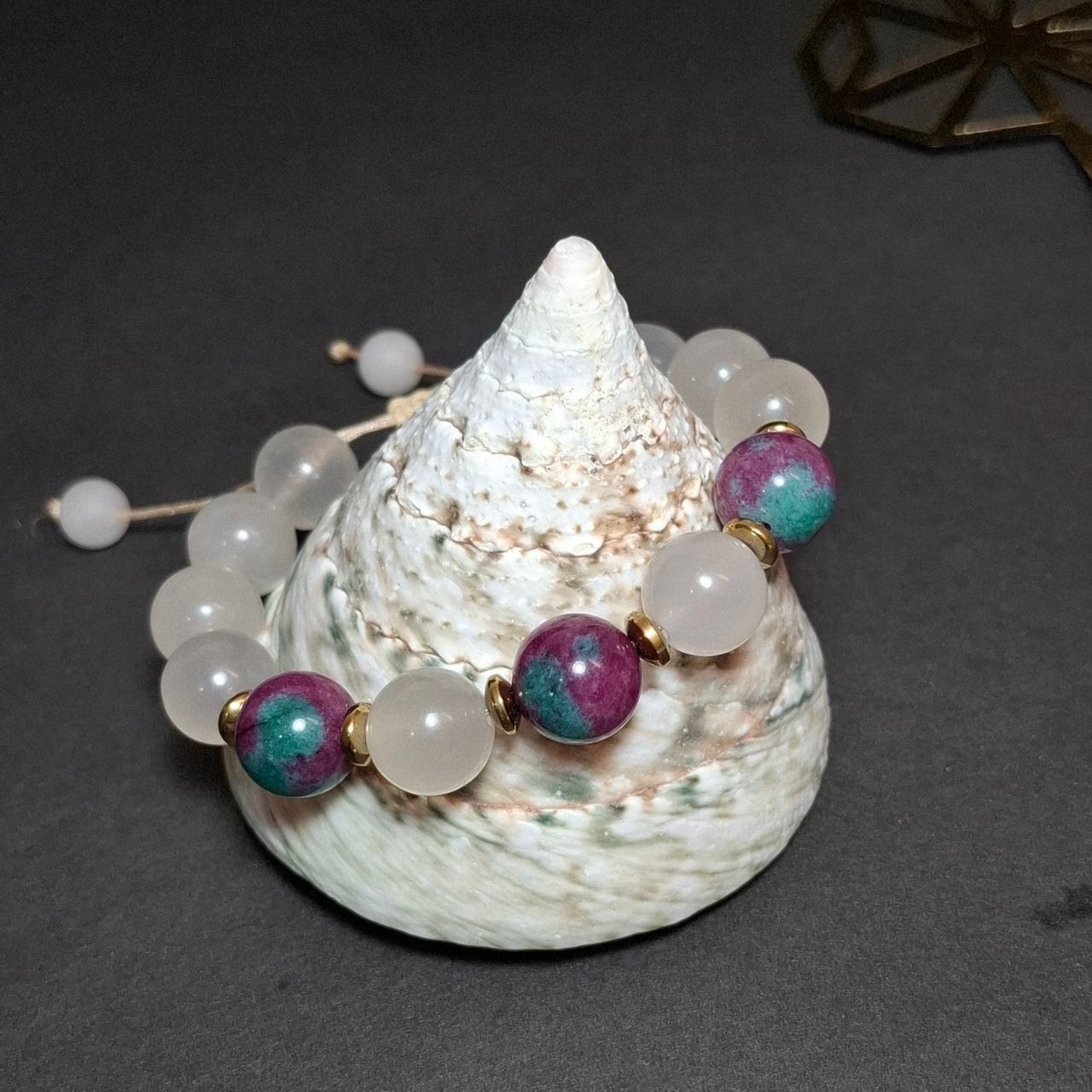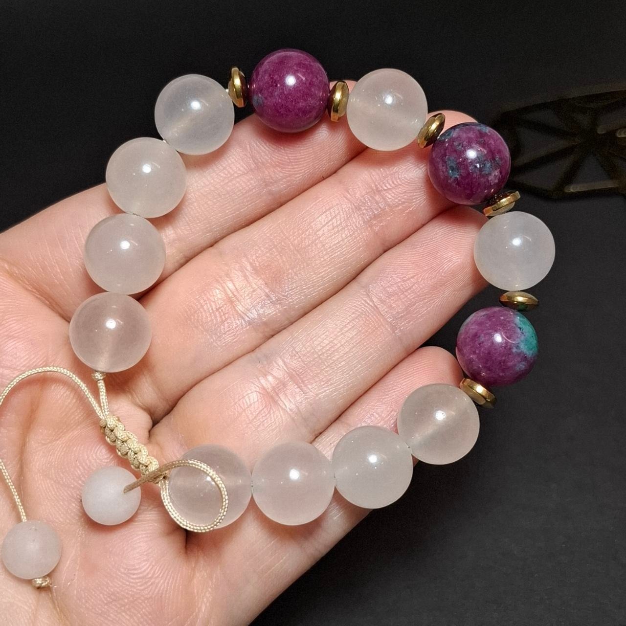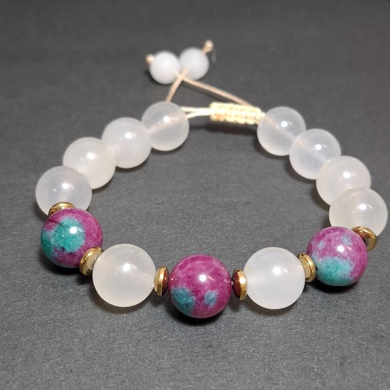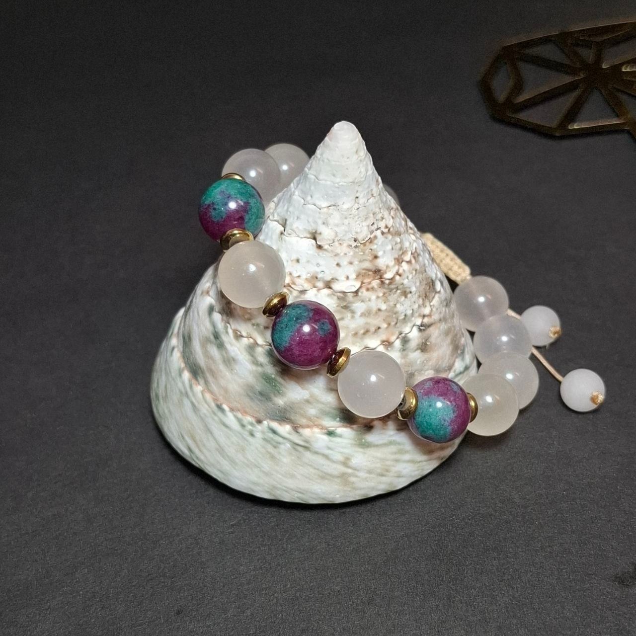 دستبندبامهره سنگ جید و کوارتز معدنی کد10380