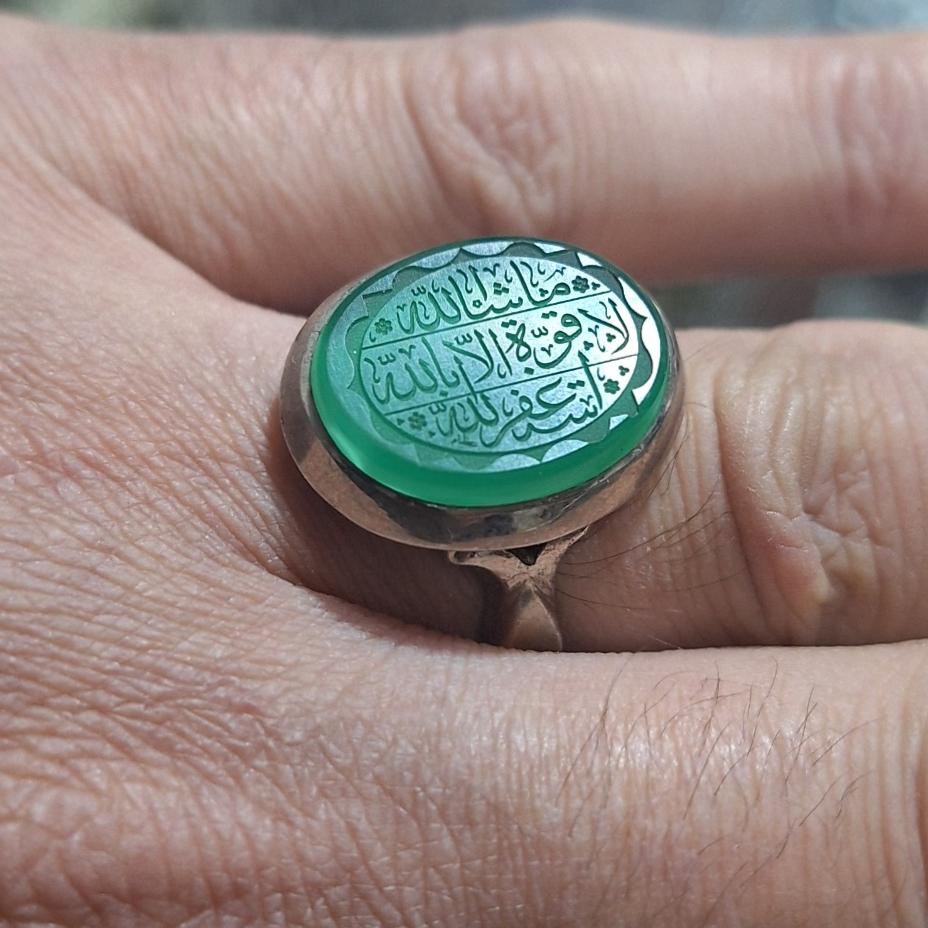 انگشترنقره نگین عقیق سبز باذکر بینظیر ماشاالاه