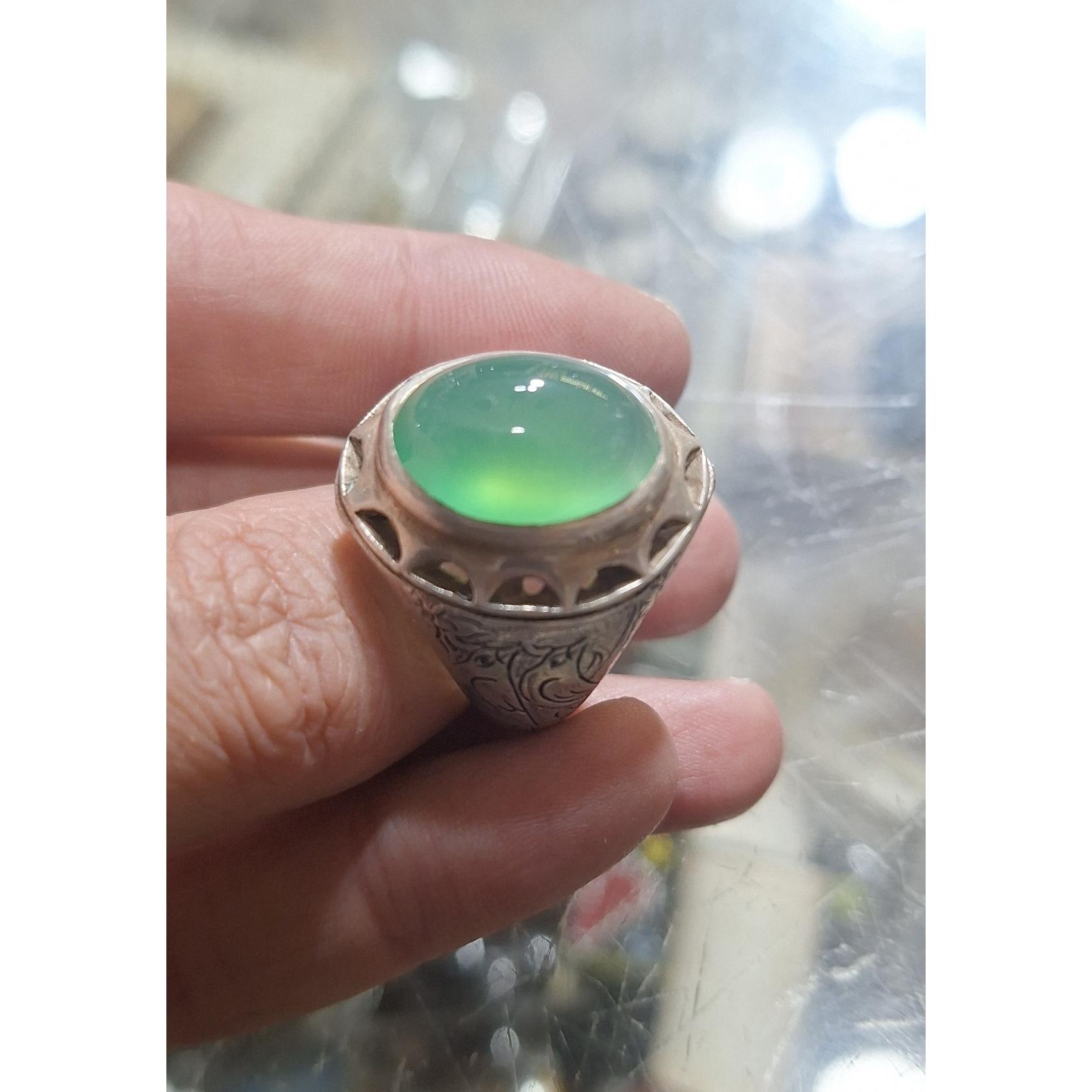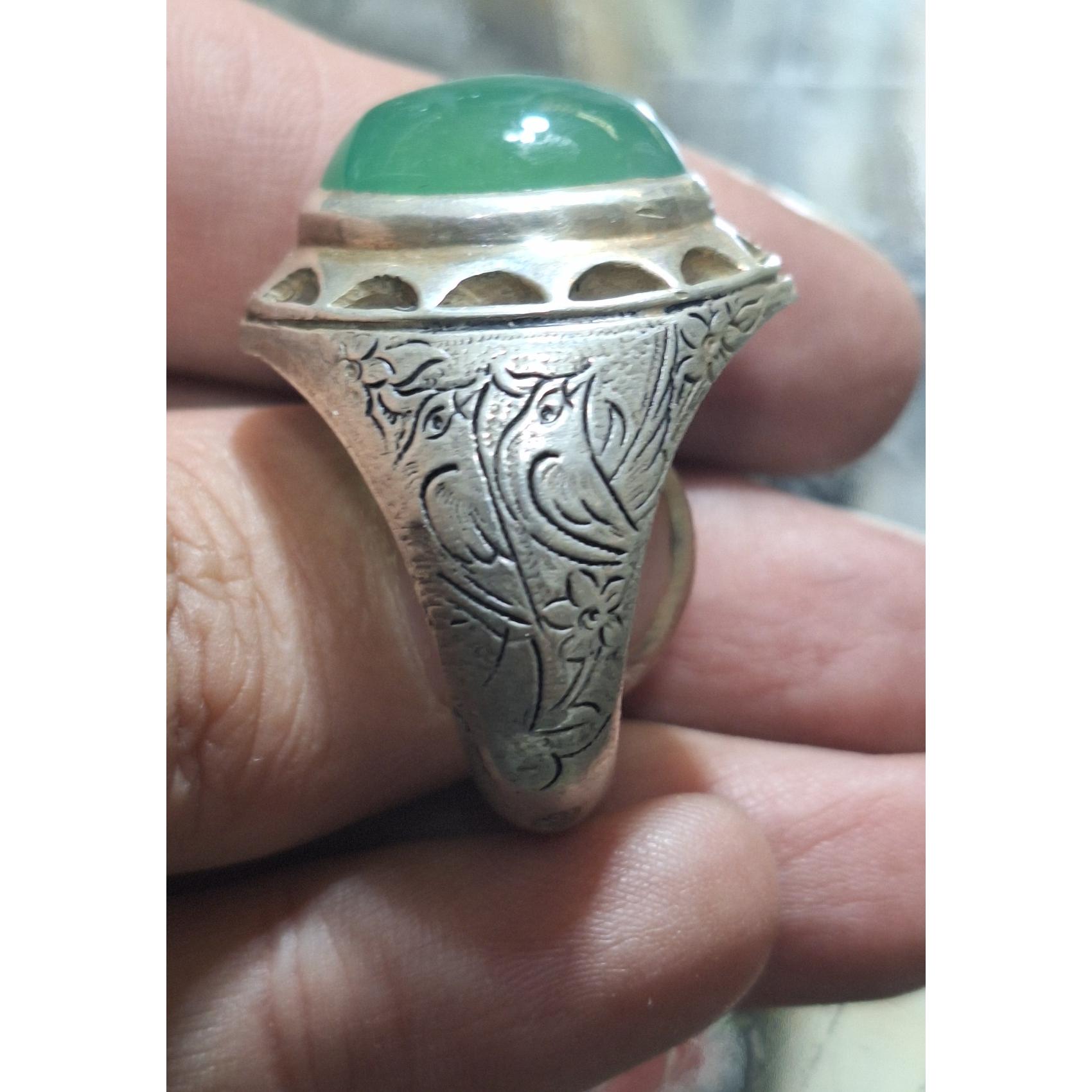 انگشتر نقره باعقیق اب دار باقلم زنی زیبا