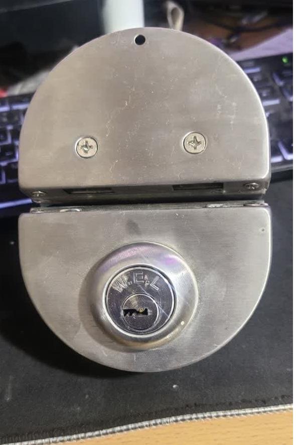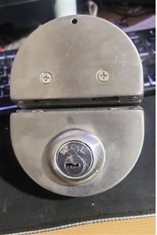قفل درب شیشه سکوریت مناسب مغازه ها ، کاملا سالم با  کلید