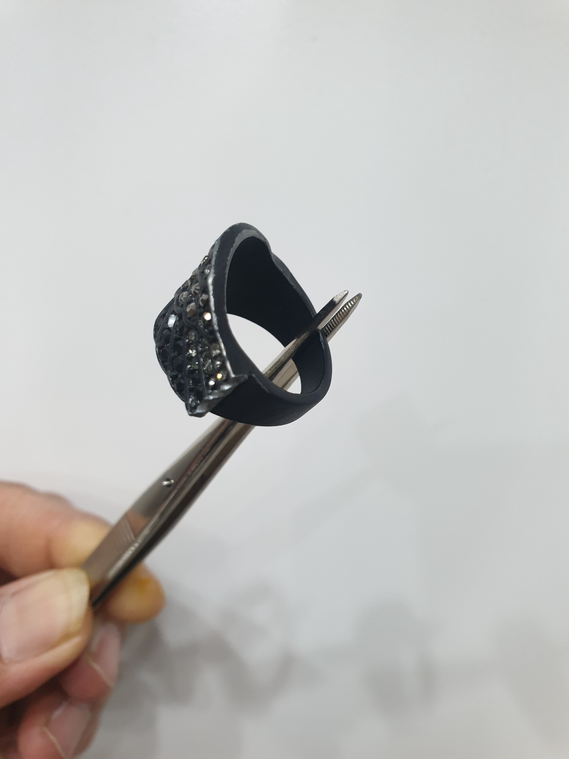 یک عدد انگشتر سیاه در حد نو میباشد یعنی استفاده نشده فقط دو تا از نگین هاش گم شده البته زیاد مشخص نیست ولی گفتم که نگین نگفتی