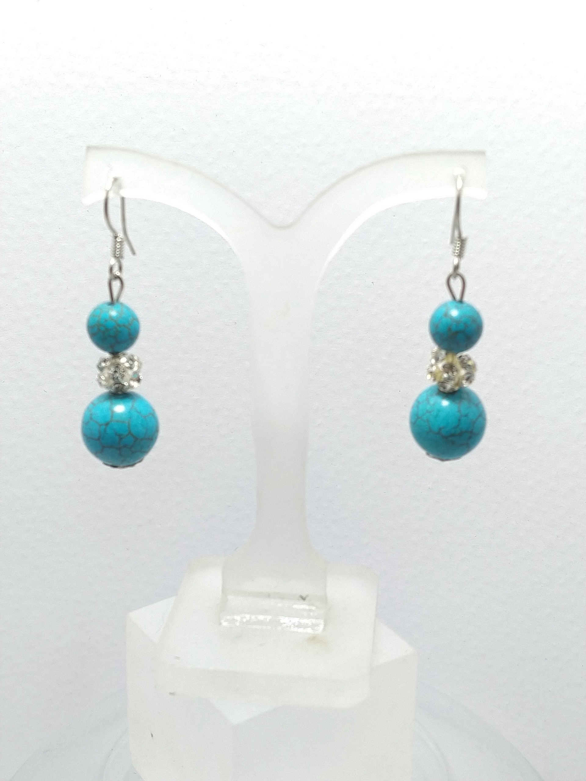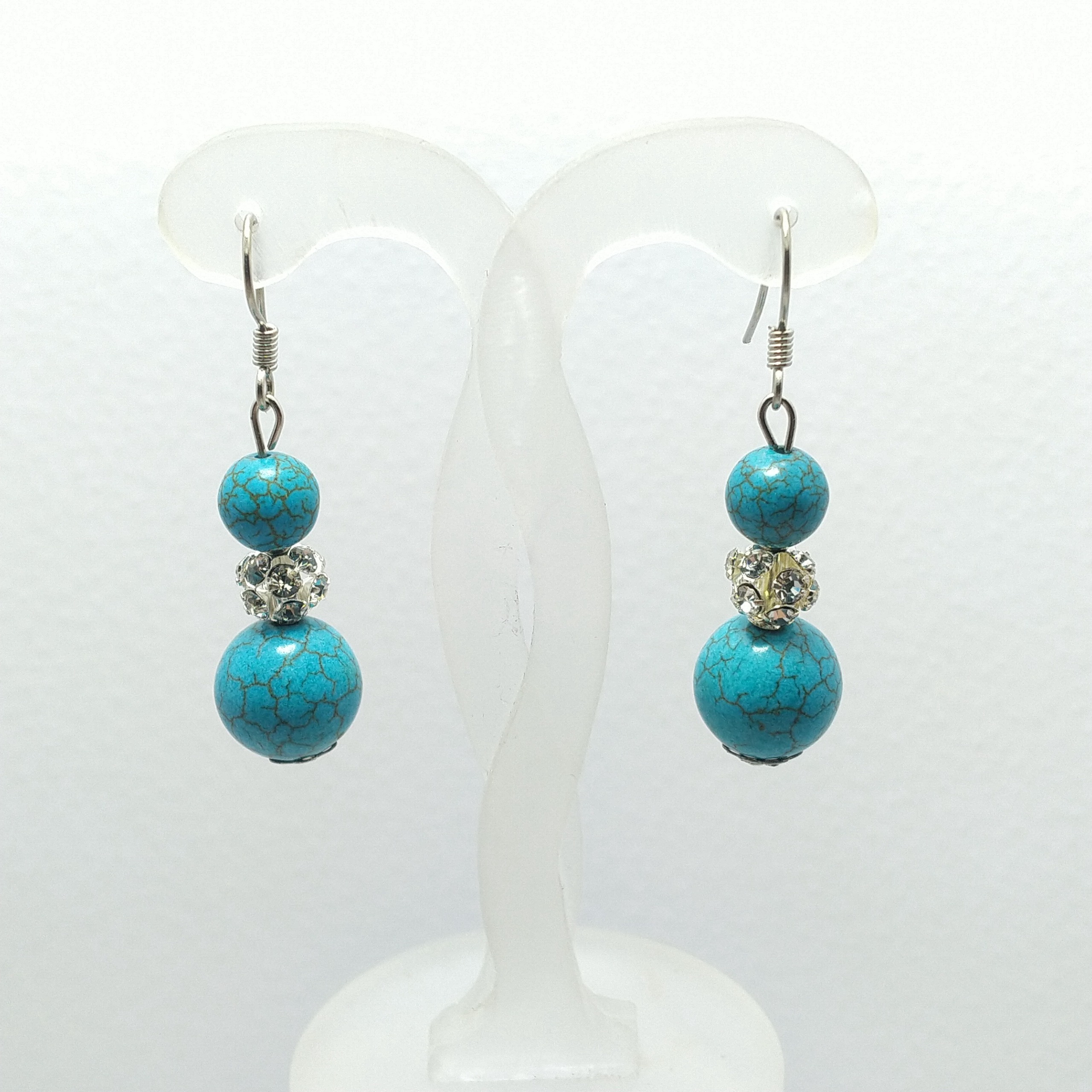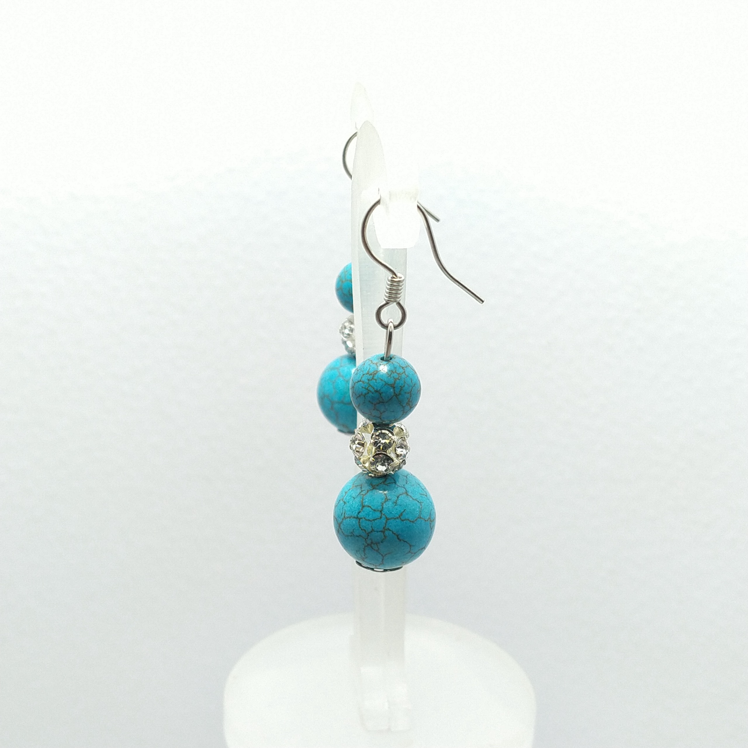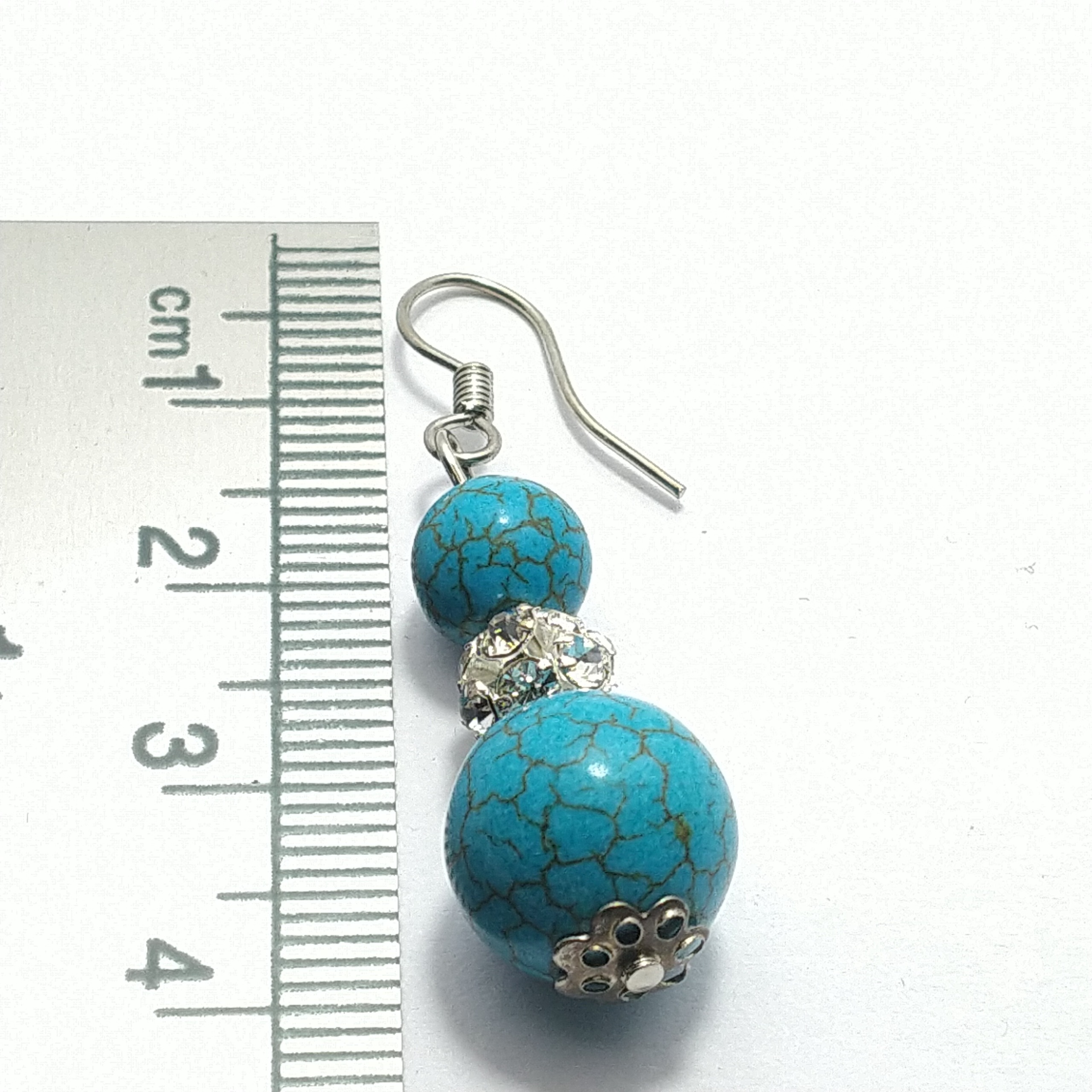گوشواره گوی نگین دار و سنگ هولایت رنگ شده فیروزه ای با استیل
