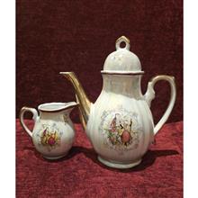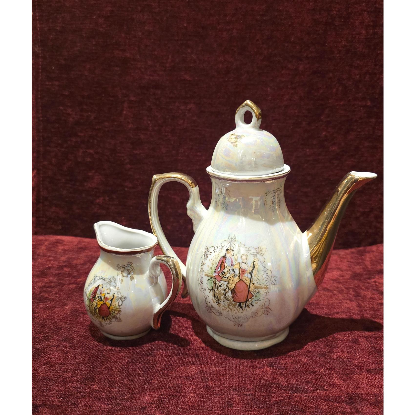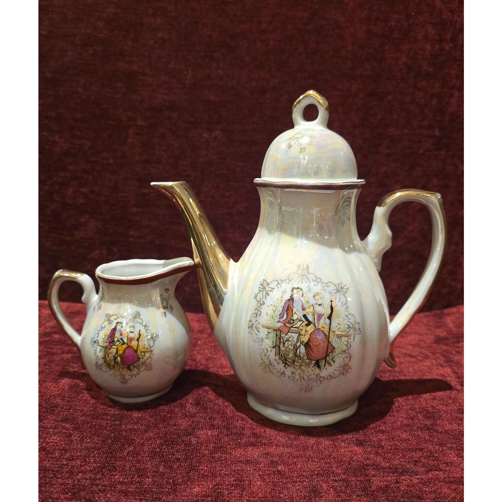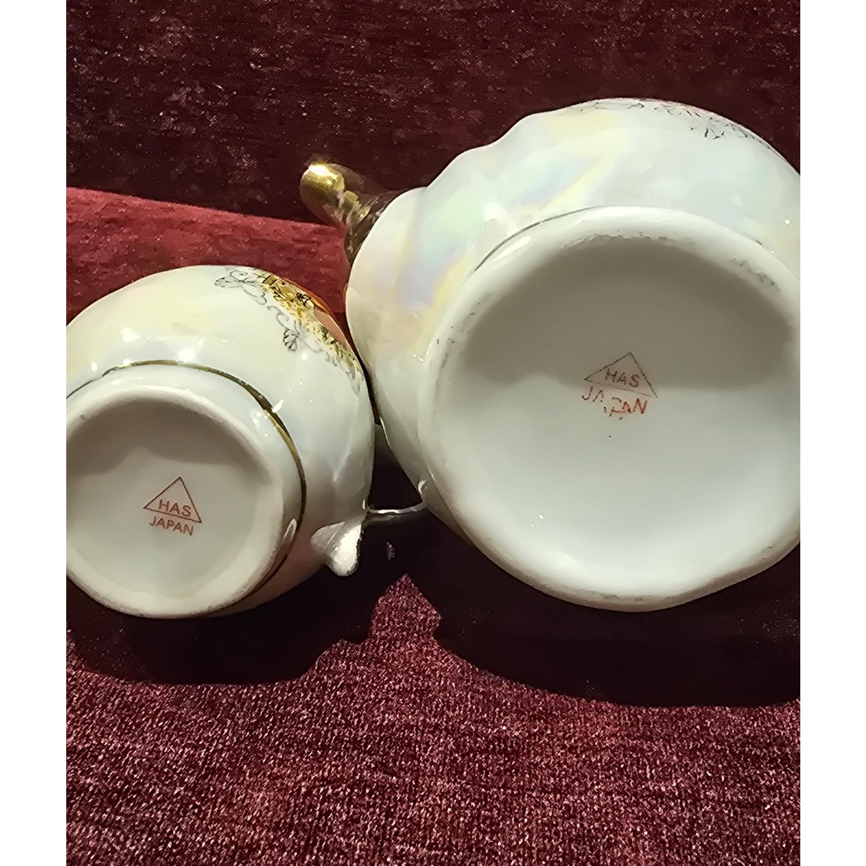 ست قوری قهوه خوری و شکر ریز آنتیک و کلکسیونی ژاپنی . صدفی هفت رنگ طرح دنسی . سالم و بدون ایراد