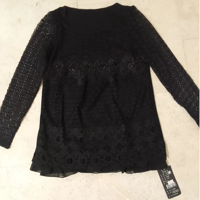 بلوز شومیز پیرهن آستین بلند گیپور مشکی پیراهن بلیز دخترانه زنانه فری سایز خارجی نگین دار سایز 34تا40