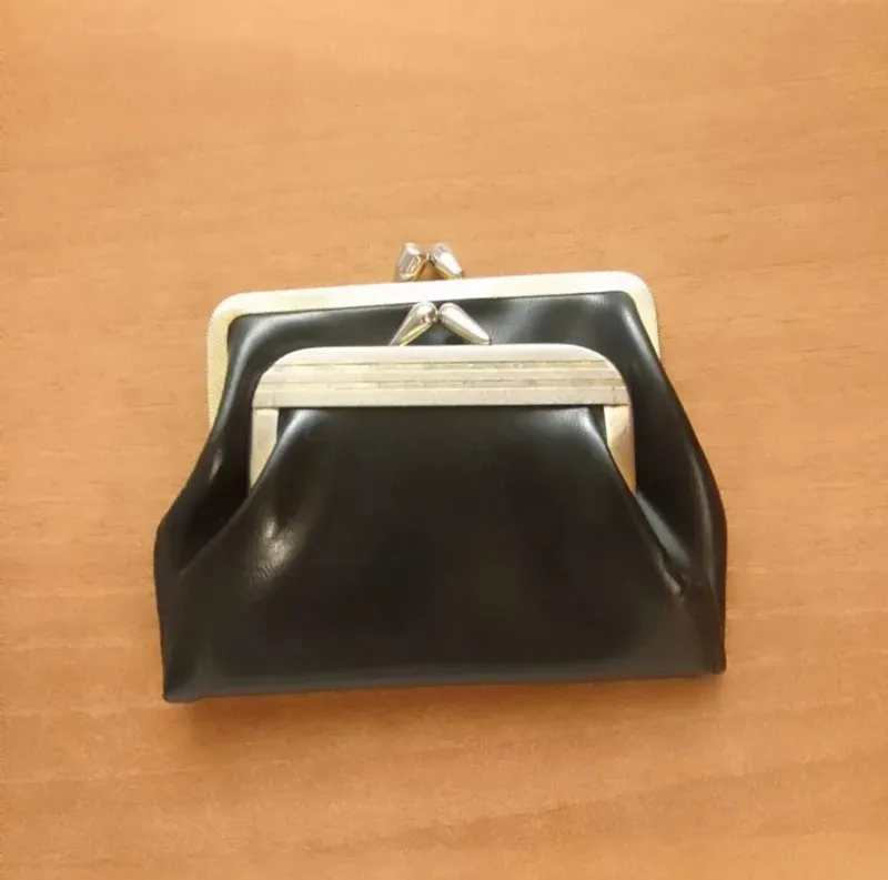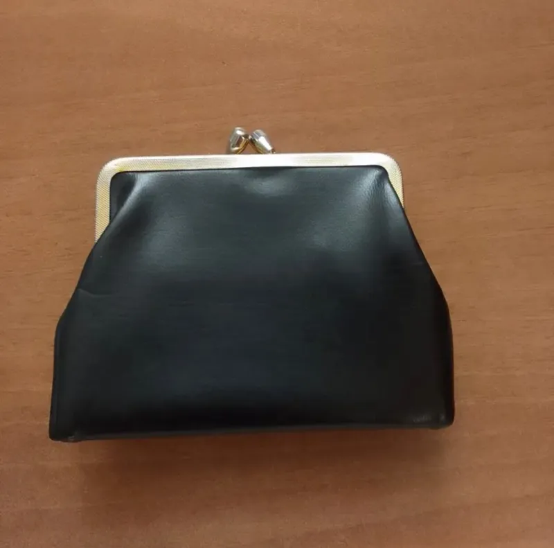 کیف پول چرم مشکی طلایی کارت مدارک کوچک قدیمی آنتیک