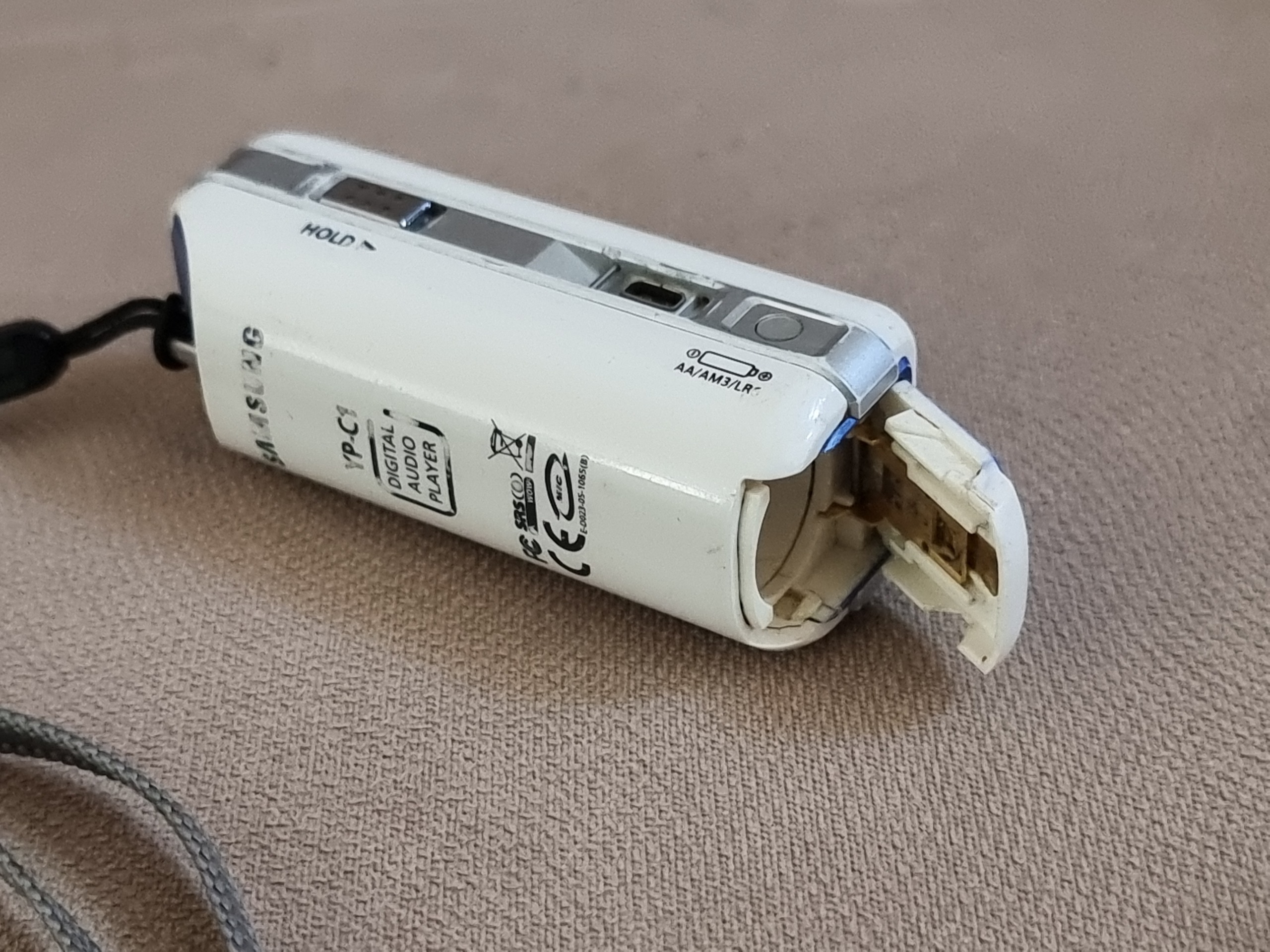 ام پی تری پلیر MP3 Player سامسونگ مدل YP-C1 سالم هستش درب باتریش موقعی که باتری داخلش هستش قشنگ جا نمیره 512 مگابایت هستش باتری قلمی میخوره