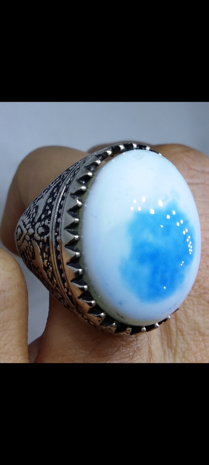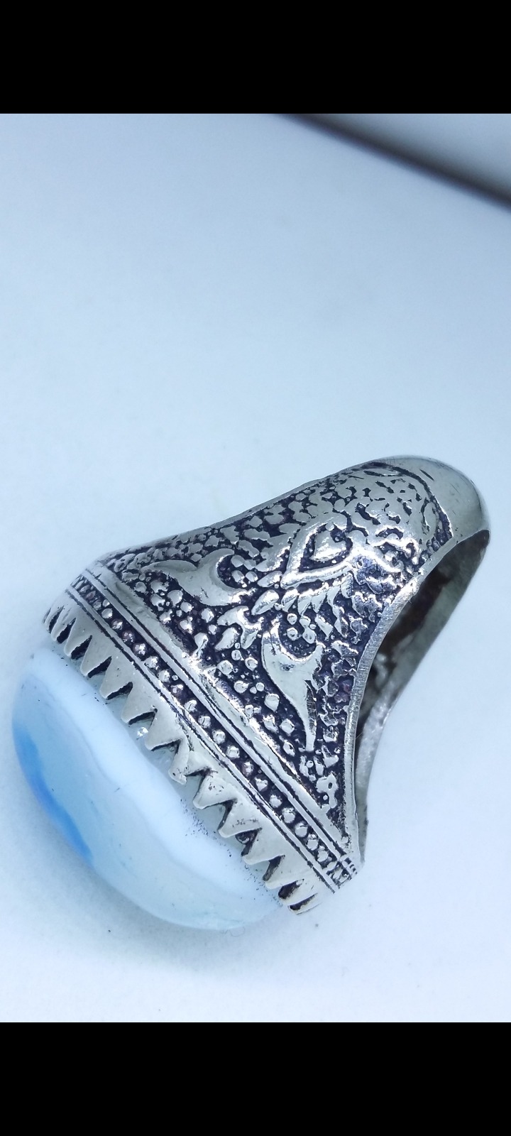 انگشتر قلمزنی عقیق آبی شاهکار زمینه دار تماشایی