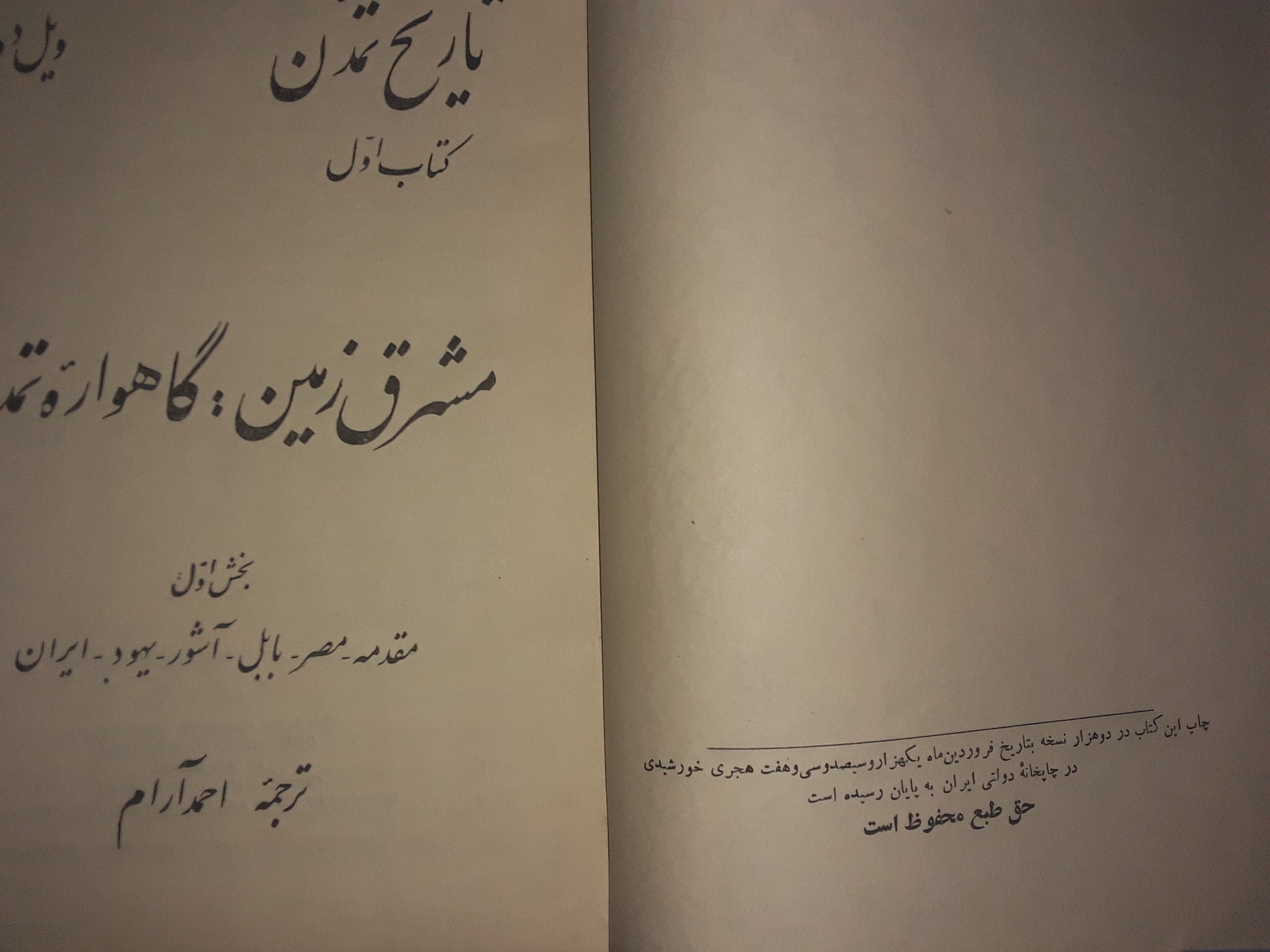 تاریخ تمدن ویلدورانت چاپ اقبال با یک جلد ناقص