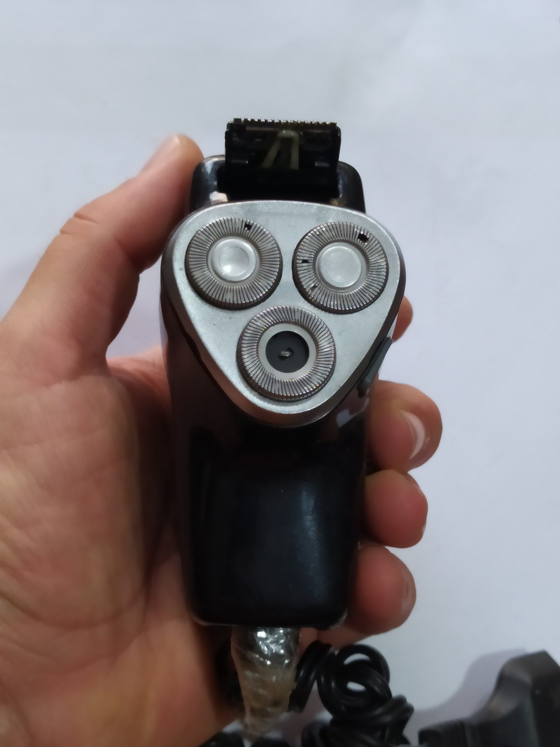 ماشین اصلاح رو زدیم برق کار میکنه هر سه تیغه روان میچرخه