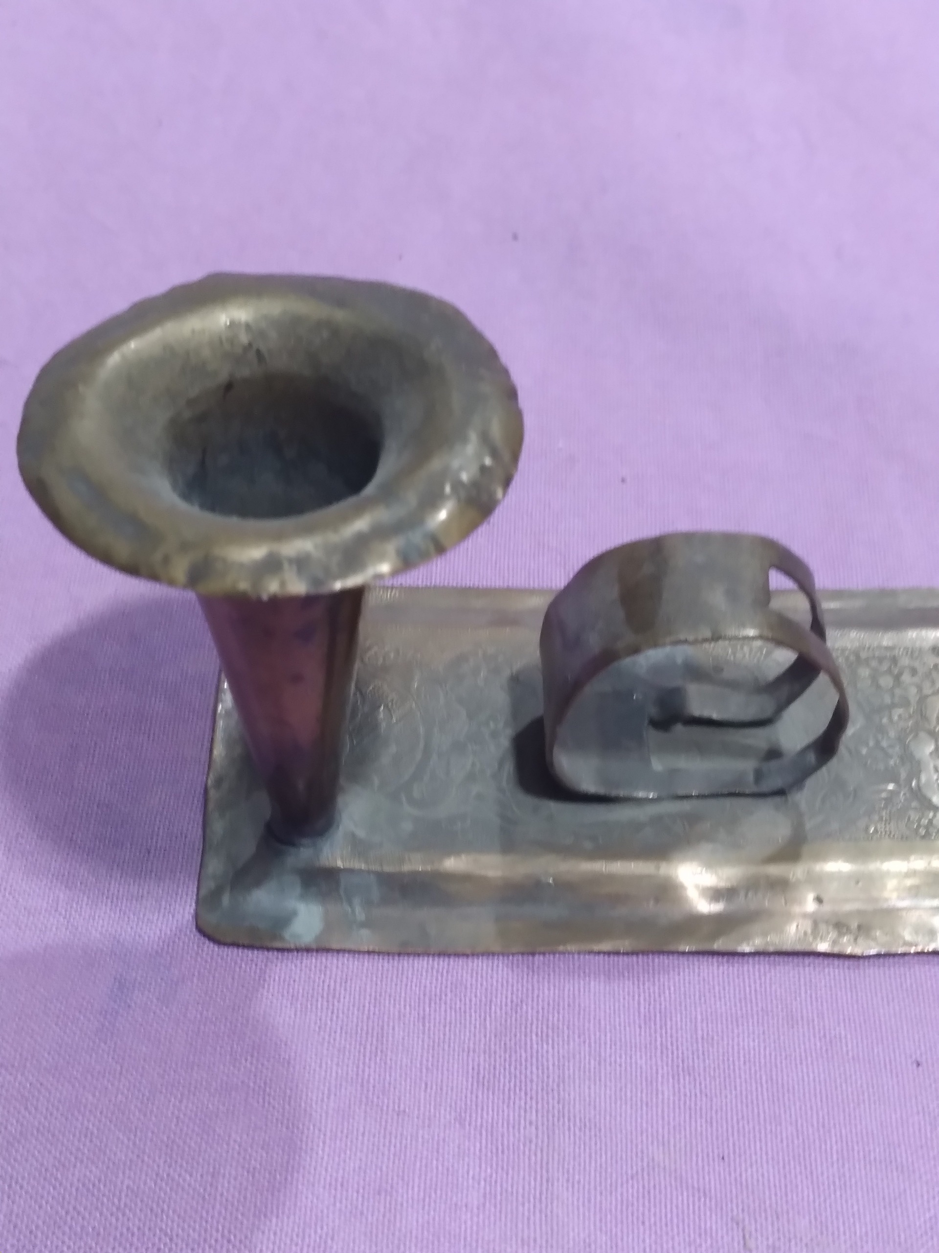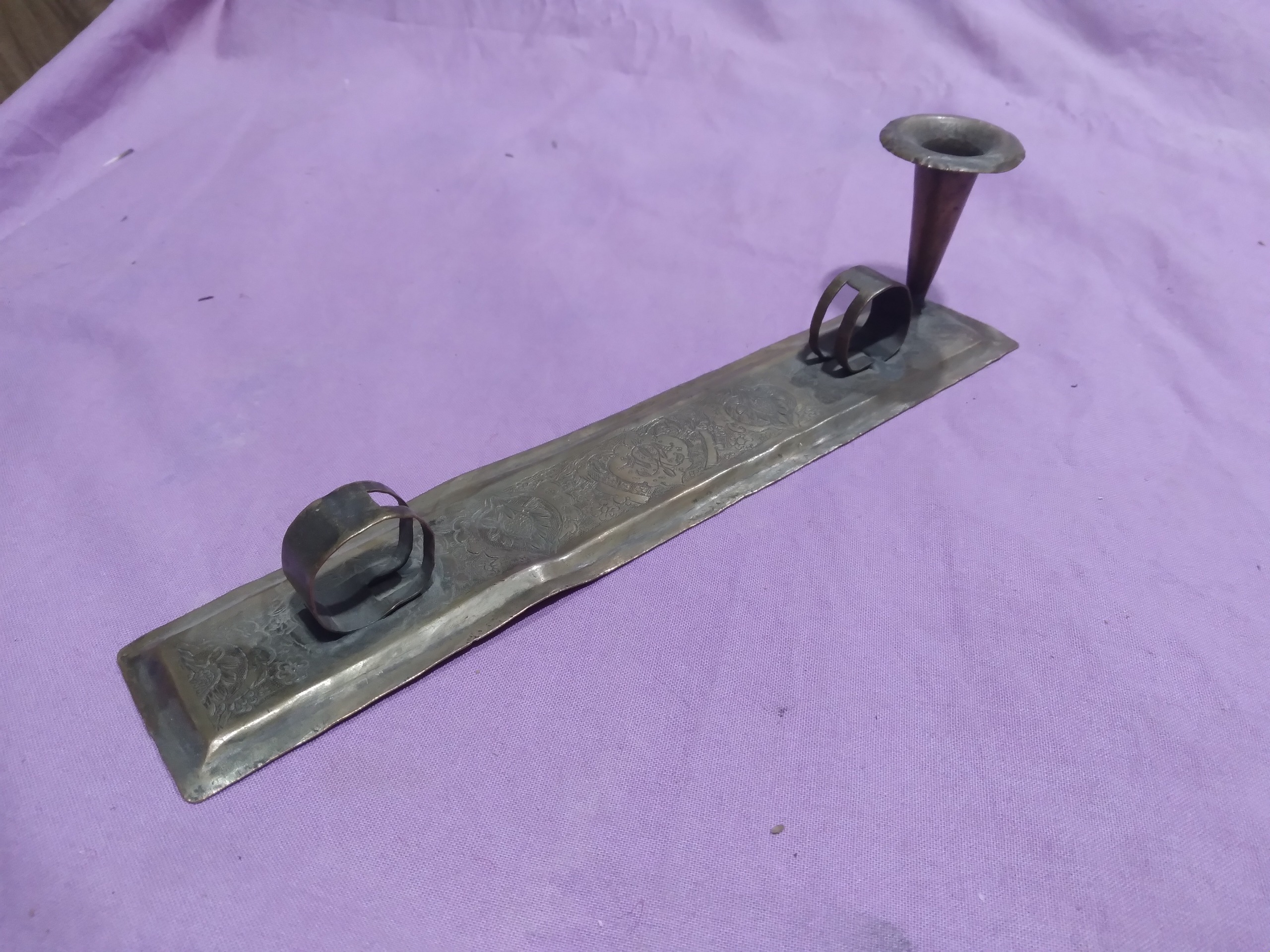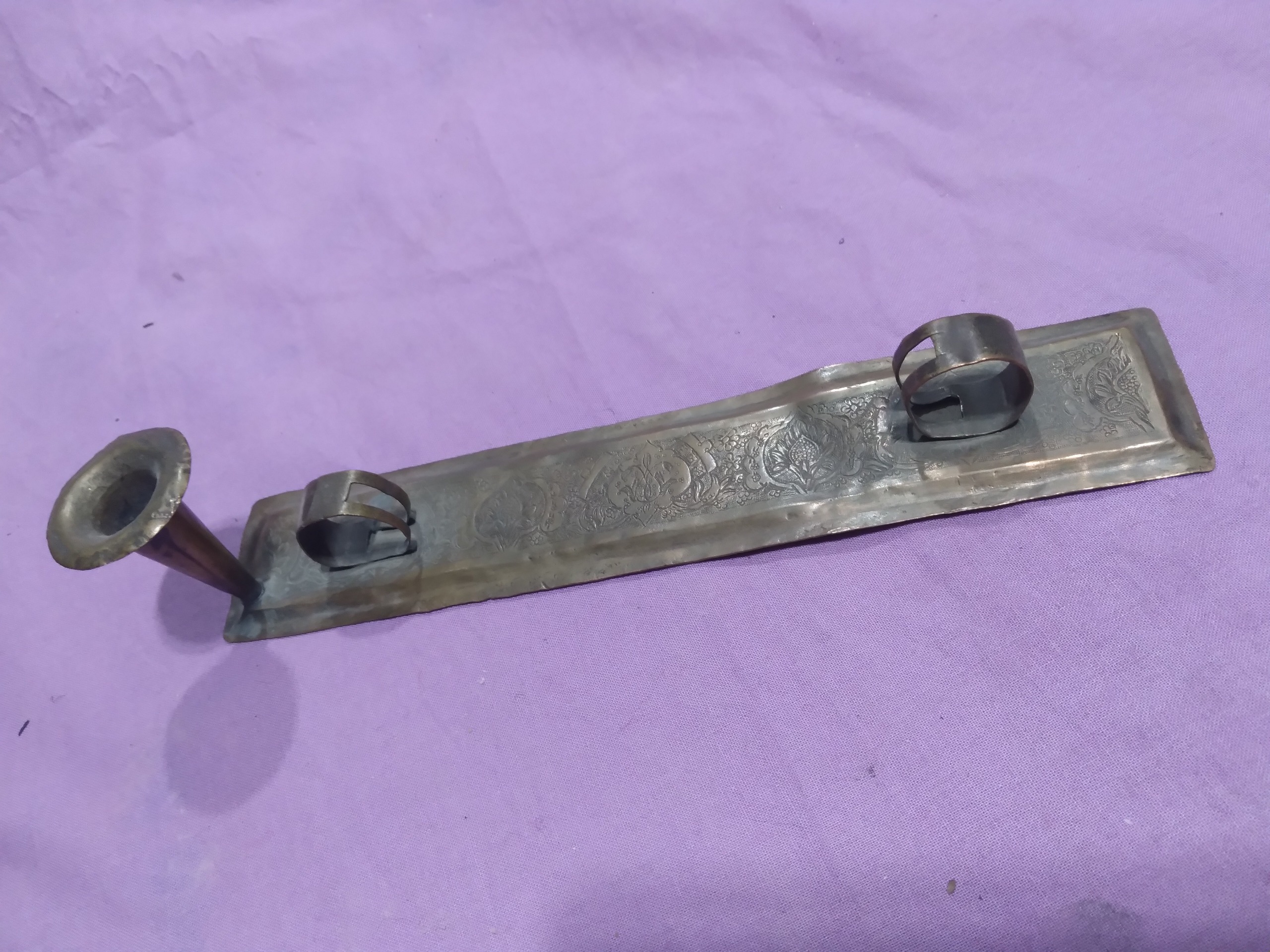 قلمدان برنجی قاجاری غرق قلم کار کهنه و اصیل ایرانی