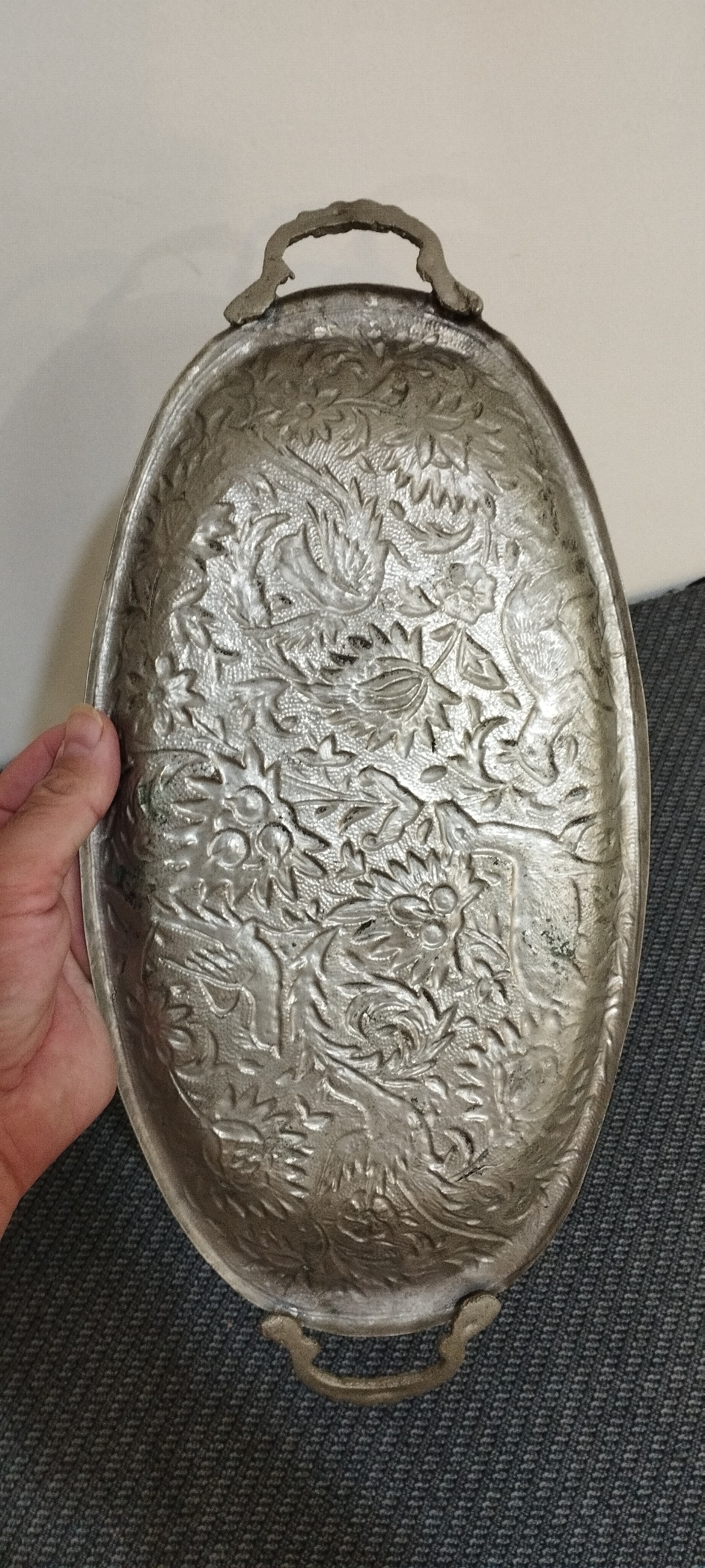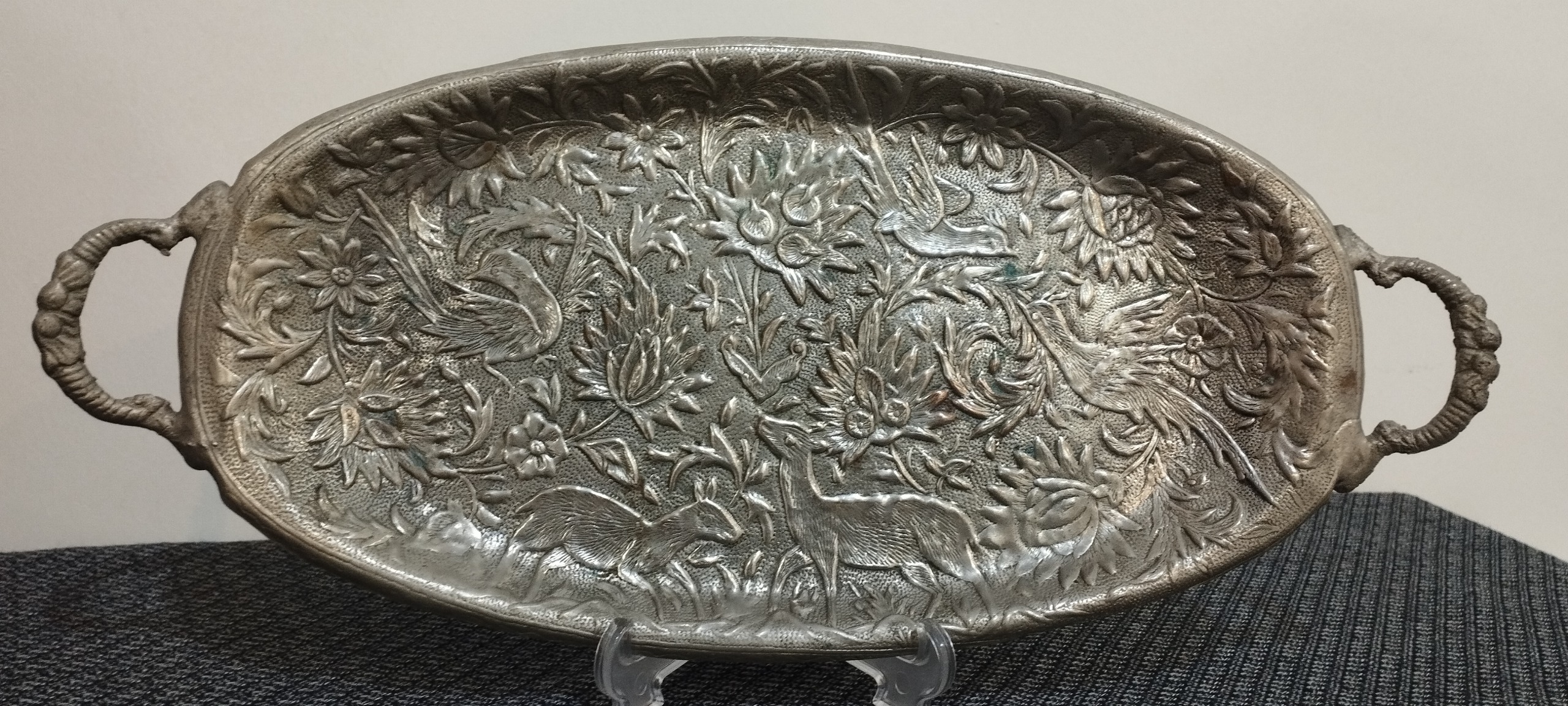 دیس فلزی قلمکاری برجسته آنتیک دسته دار