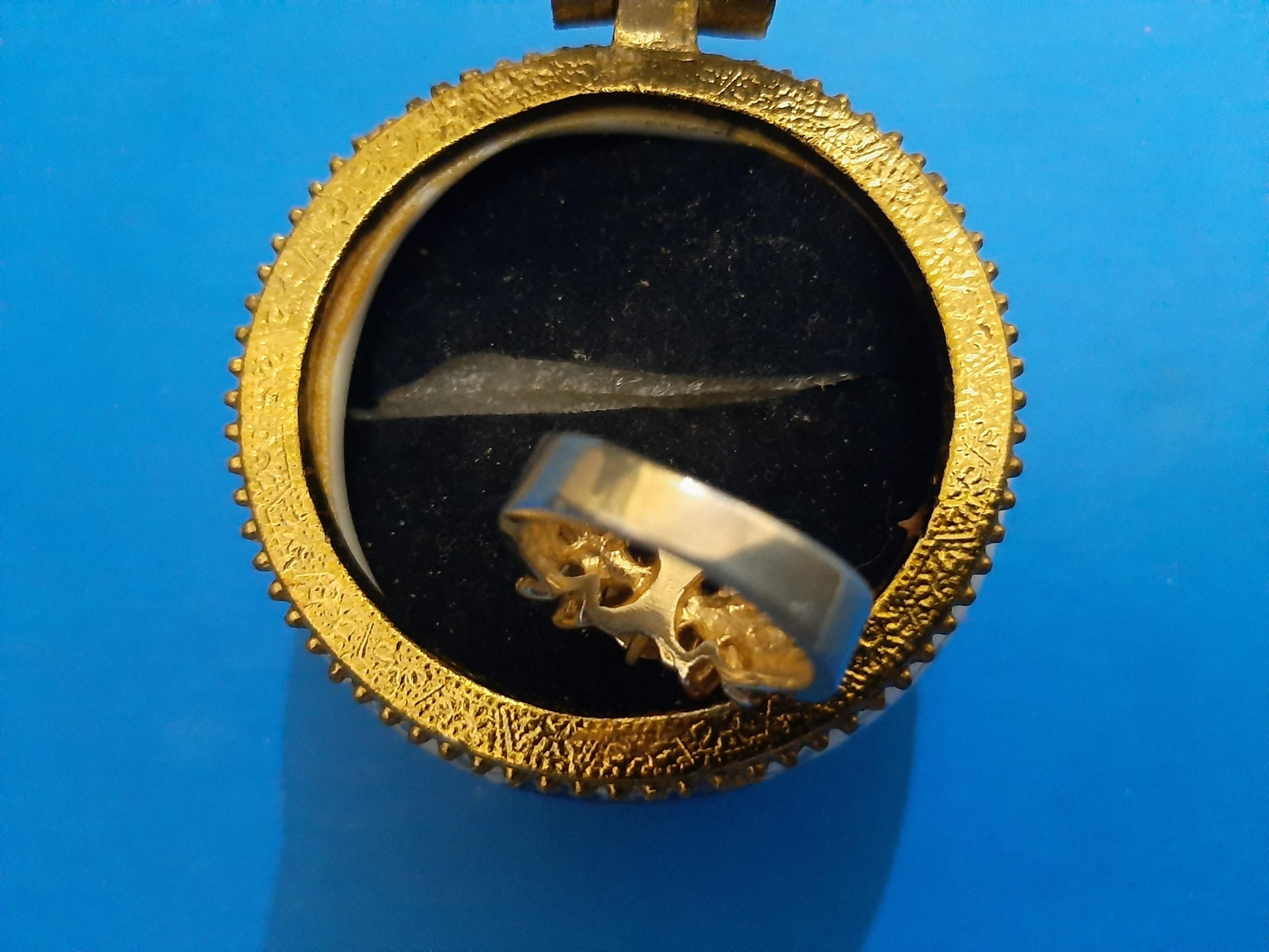 انگشتر زنانه استیل ، سایز 7 . قسمت هایی از انگشتر رنگ طلایی رفته و نقره ای شده که در عکس مشخصه .