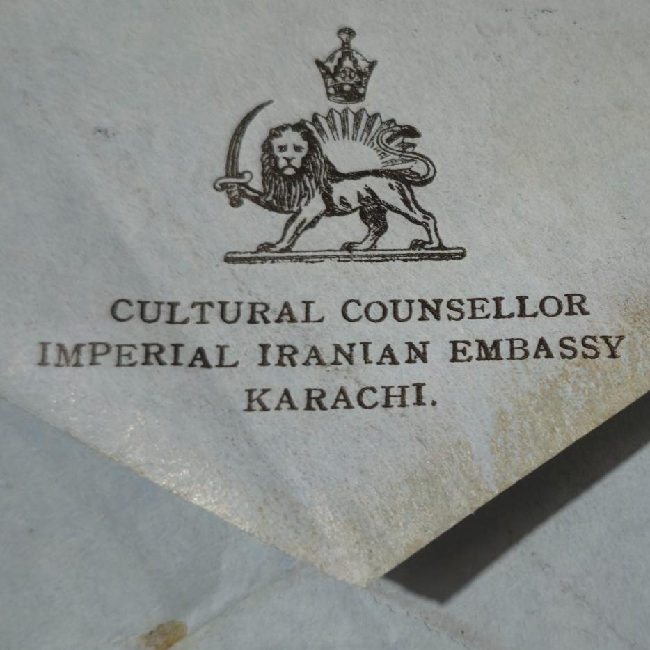 پاکت شیر خورشید کنسولگری ایران در کراچی پهلوی