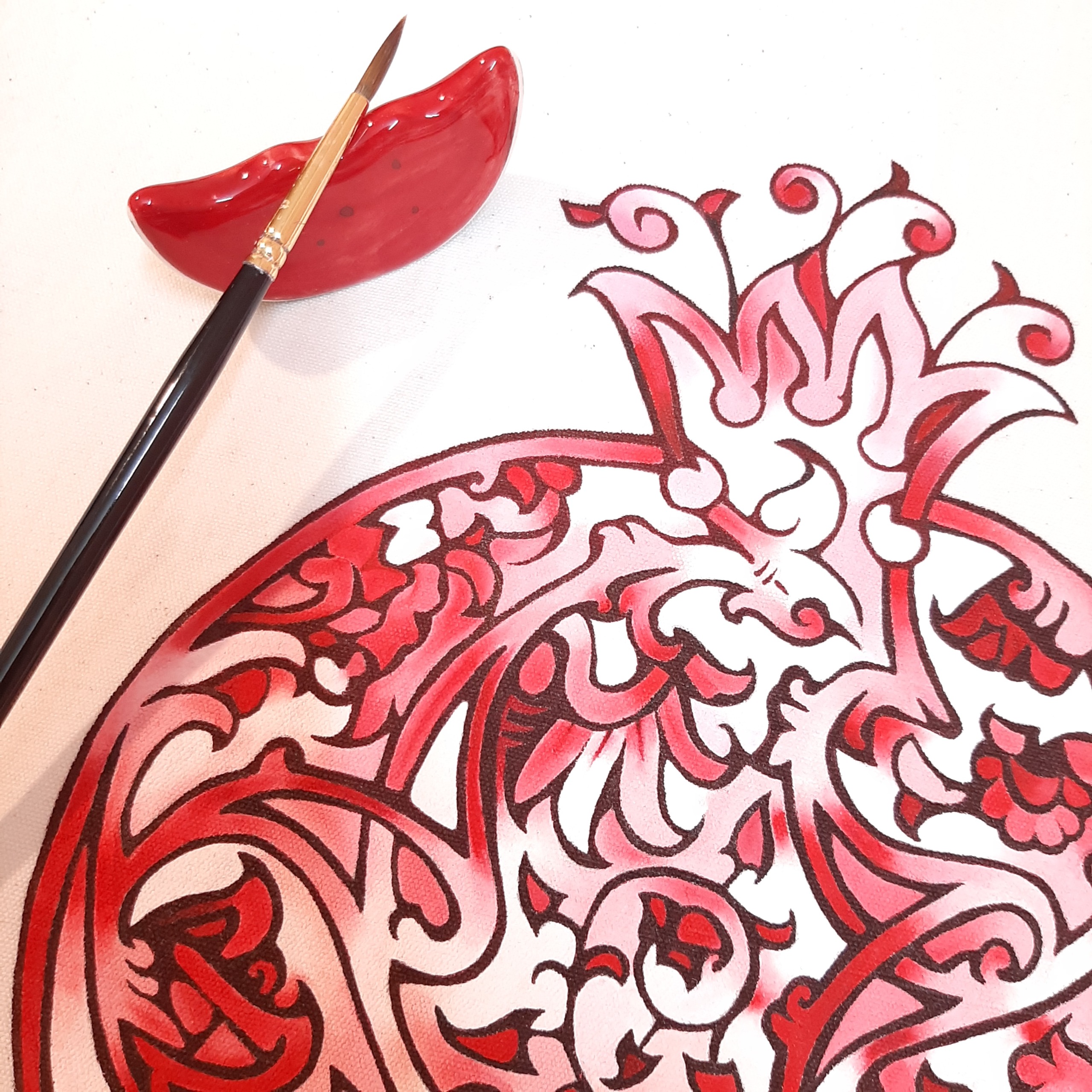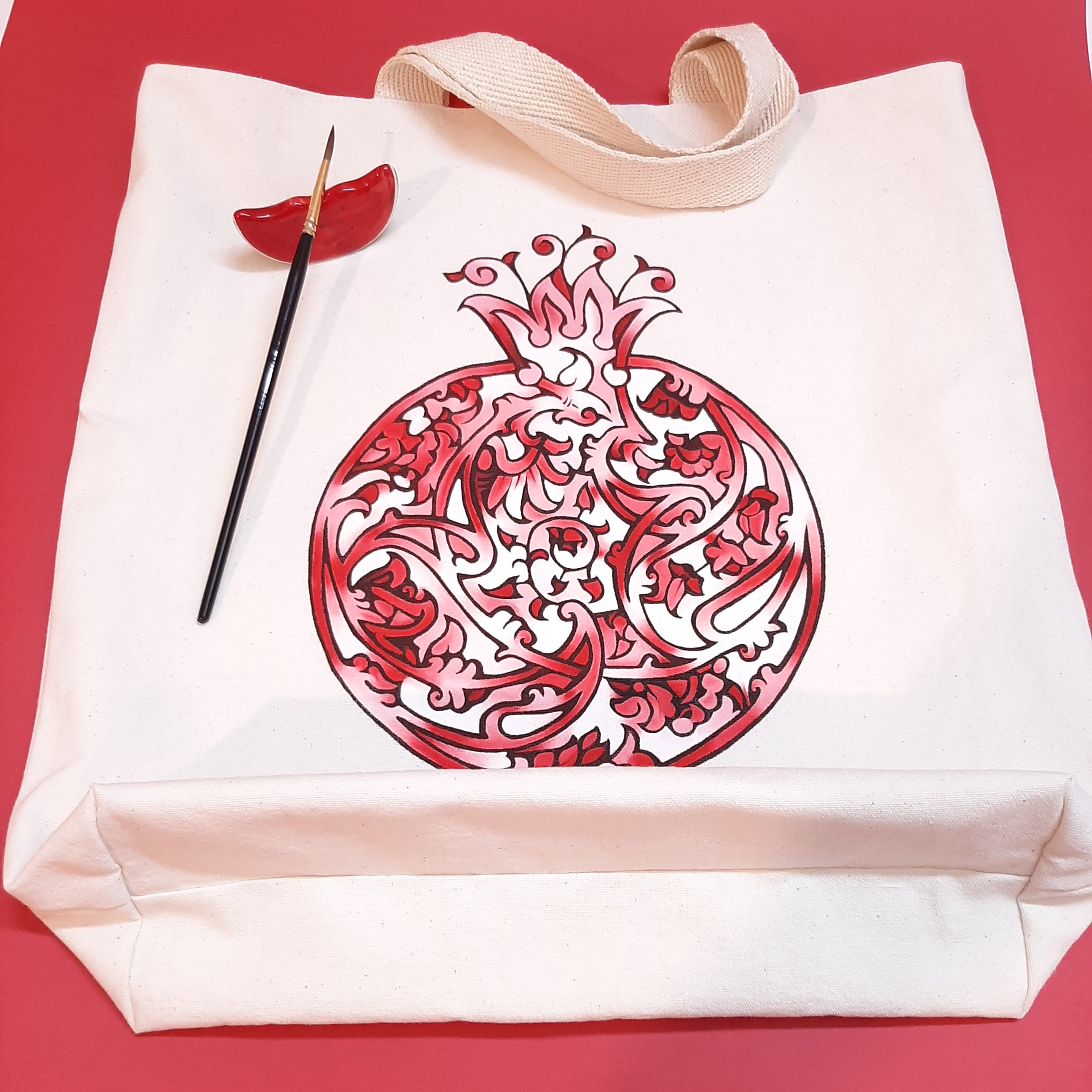 نقاشی شده با قلم مو و رنگهای مخصوص پارچه رنگ ثابت و 100% قابل شستشو