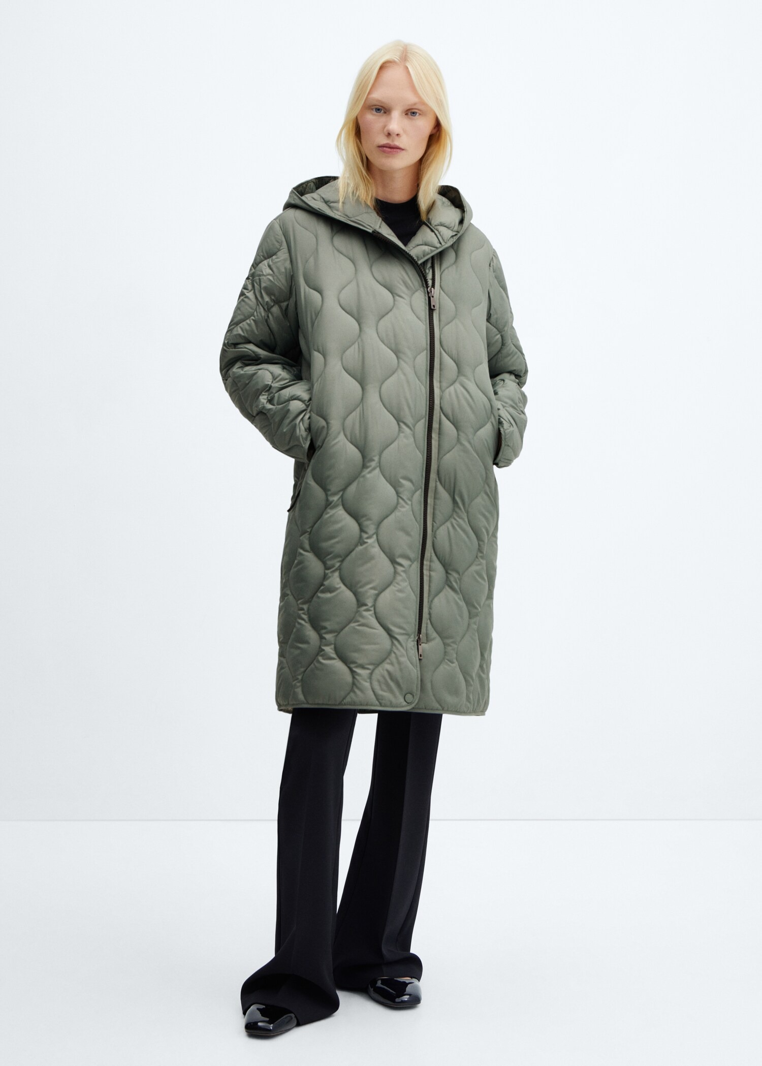 کاپشن بلند کلاه دار سبز وارداتی برند Mango