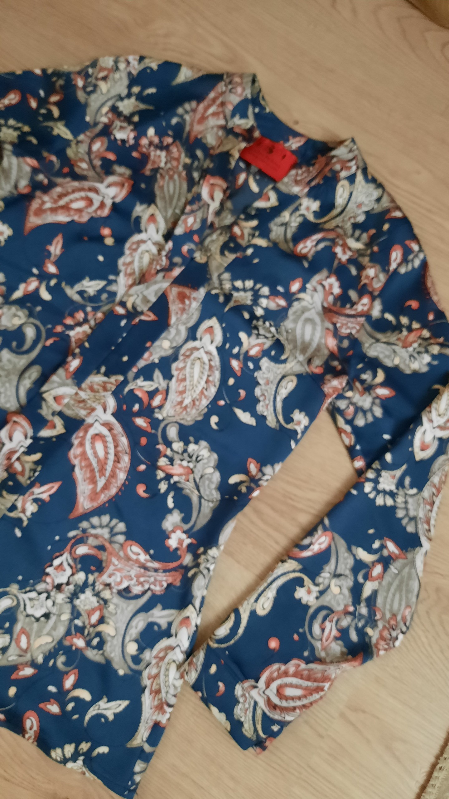 فوق العاده شیک جنسشو نمیدونم فکر کنم ویسکوزه همینطوری زدم سایز 40 زیر بعل تا زیر بعلش 49 هستش