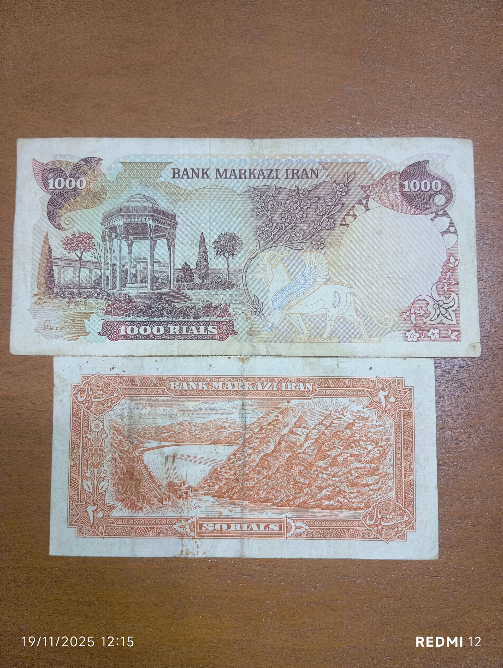 دو عدد اسکناس شاهنشاهی 1000,و 20, ریالی هر دو عدد دست دوم سالم وتمیز اسکناس 1000 ریالی در حد نو میباشد هر دوعدد اسکناس نگاره بزرگ شانه پهن شاهنشاه هستند اسکناس ها هر دو چاپ یکمی شماره خاص وروند هستند که به زیبایی همدیگر رو تکمیل میکنند میشه گفت یه ترپیل خاص رو تشکیل میدن میخواستم تکی بفروشم ولی گفتم اینها ستهای کاملی برای علاقه مندان کلکسیونر هستند تک فروشی برای من بصرفه تر بود اما پول همه چیز پول نیست تقدیم به شما