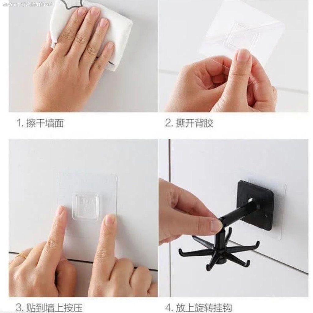آویز دیواری با پایه چرخشی با استفاده از چسب دو طرفه به سطح دیوار متصل می شود و قابلیت تحمل وزن بالا را ندارند ، در صورت نیاز به استحکام بیشتر اتصال ، می توانید از چسب های قوی تر استفاده کنید .