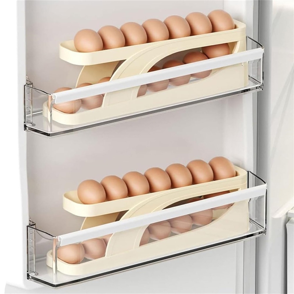 محصولی جدید ، با طراحی ظاهری ساده ، اما زیبا و کاربردی که بدون شک می تواند به اغلب ما برای نگهداری بهتر و البته دسترسی ساده تر به تخم مرغ ها کمک بسیاری کند . اولین ویژگی این کالا طراحی آن به صورت دو طبقه و البته باریک می باشد ، بنابراین فضای کمی را داخل طبقات یخچال و یا حتی روی کابینت اشغال می کند . نحوه قرارگیری تخم مرغ ها درون نگهدارنده تخم مرغ ریلی به صورت ردیفی و پشت سر هم است به طوری که تخم مرغ ها به پهلو قرار گیرند تا بتوانند به راحتی بر روی سطح حرکت کنند . طبقه دوم استند دارای مقداری شیب به سمت عقب می باشد ، قسمتی که شیاری برای عبور تخم مرغ و انتقال آن به طبقه اول تعبیه شده ، بدین ترتیب هر بار که شما تخم مرغی را از طبقه اول بر می دارید ، مابقی تخم مرغ ها در طبقه اول به سمت جلو و در طبقه دوم در جهت خلاف حرکت می کنند تا فضای خالی ایجاد شده را پر و به راحتی در دسترس قرار گیرند . داخل طبقات یخچال ، روی کابینت ، کنار گاز و یا هر جای دیگری که نیاز دارید می توانید از این جا تخم مرغی دو طبقه برای نگهداری از تخم مرغ ها به صورت منظم استفاده کنید .