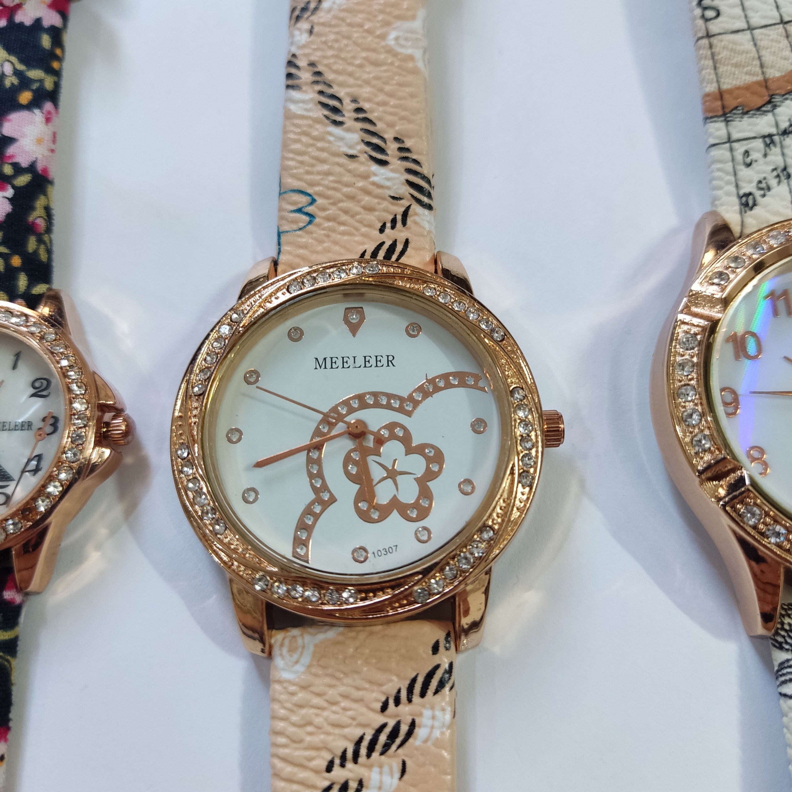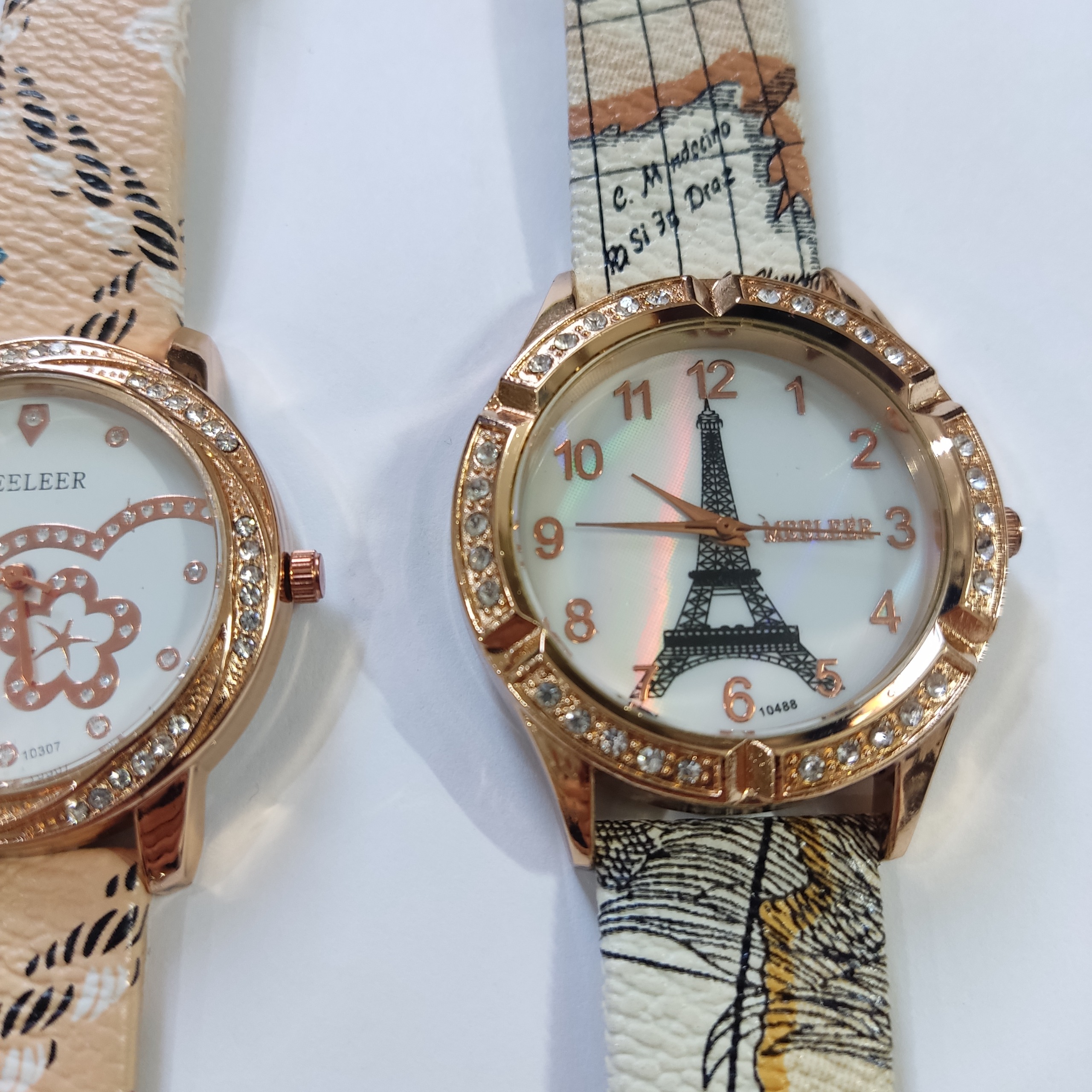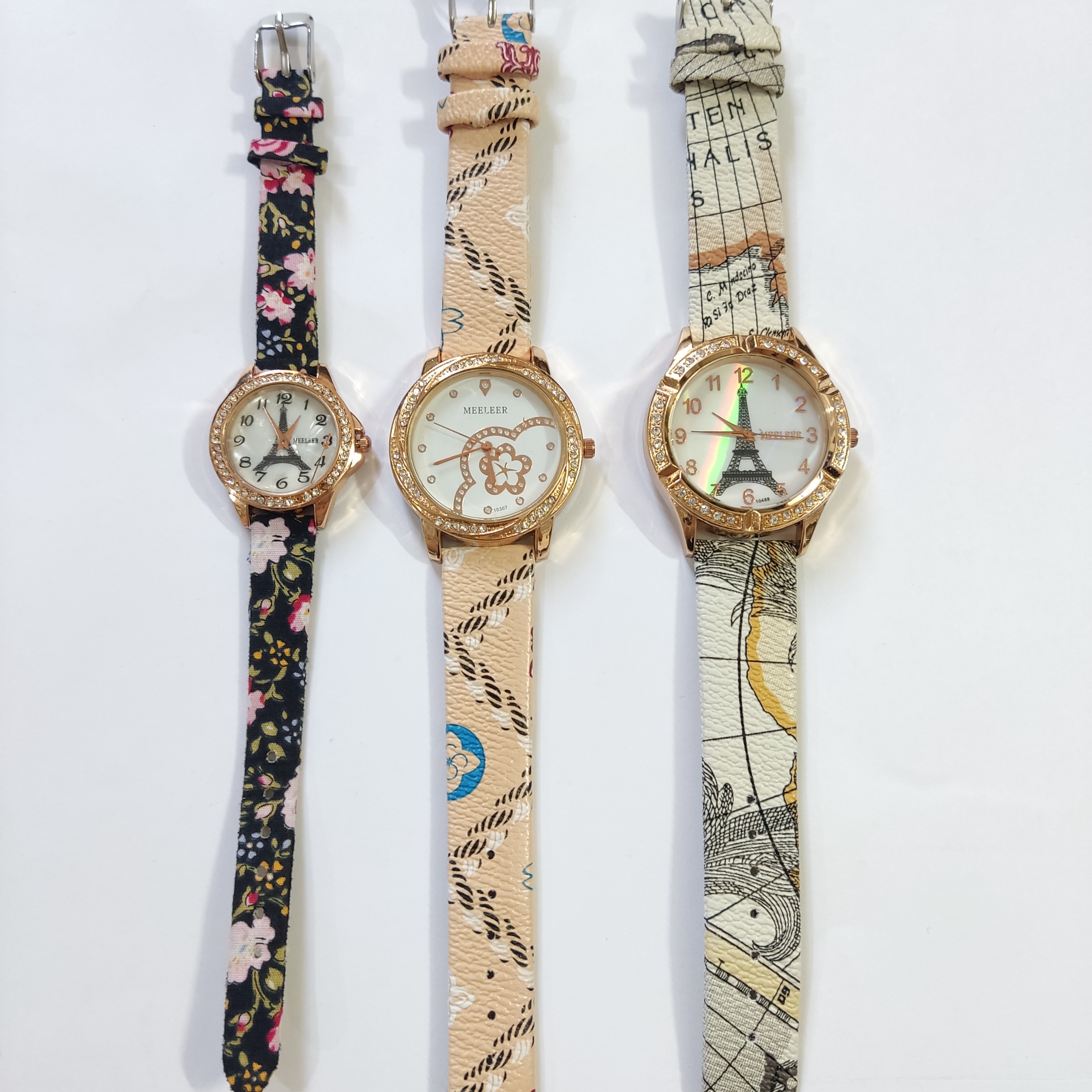 3عدد ارسال میشود، بدون جعبه  این ساعتها کاملا نو هستن ولی از همون اولی که بار رو باز کردیم ، کار نمیکردن،دیگه نمیدونیم باتری ندارن یا ایرادهای دیگه......به عنوان کالای معیوب فروخته میشه ، اگه کسی میخواد به عنوان دستبند استفاده کنه ، یا به نظرش ارزش تعمیر داره میتونه خریداریش کنه سه طرح : طرح ایفل نگین دار / گل نگین دار / بندِ روکش پارچه ای /ساعتی که بندِ روکش پارچه ای مشکی داره ، عقربه ی ثانیه شمارش هم افتاده عکسش گذاشته شده