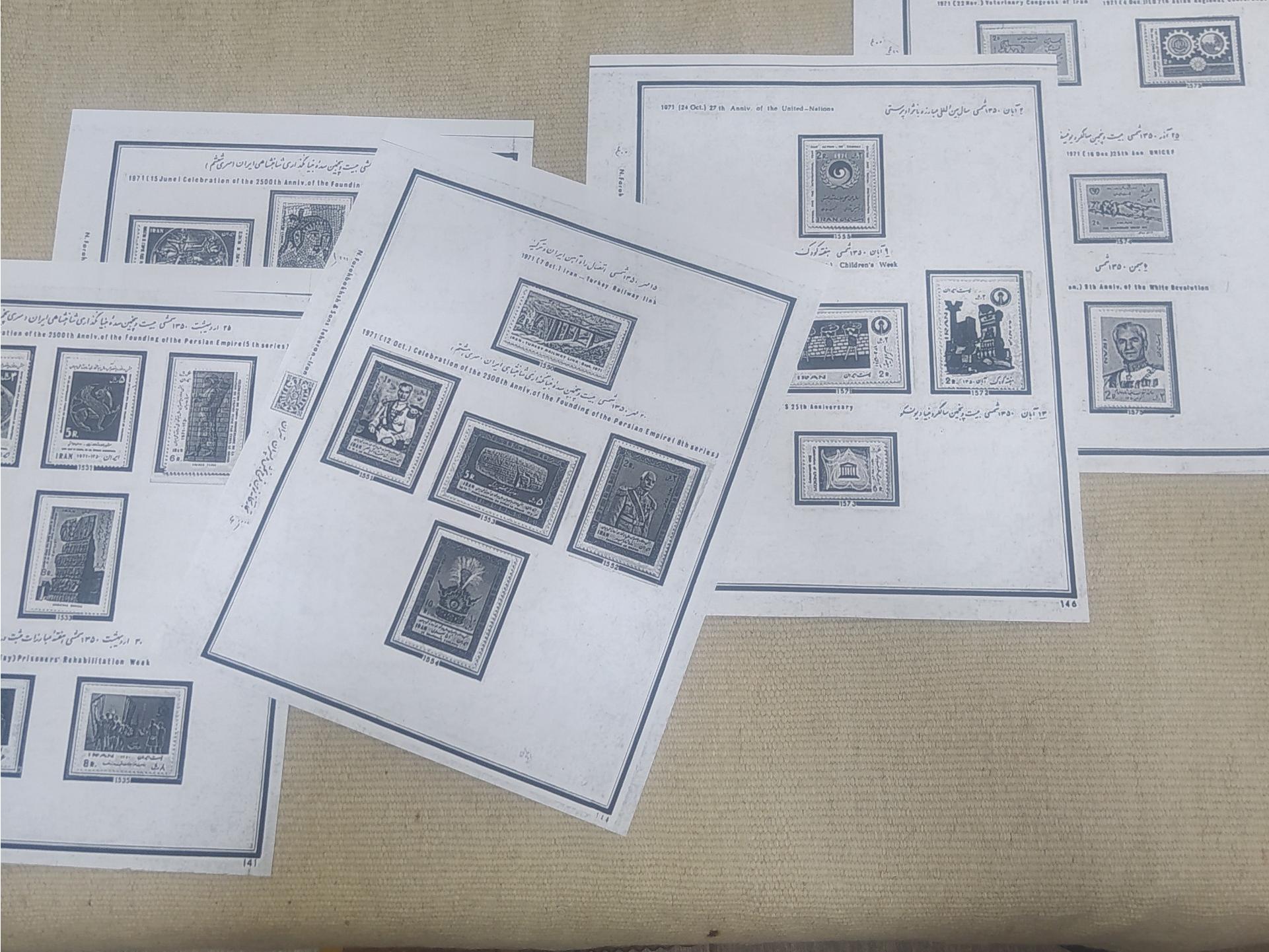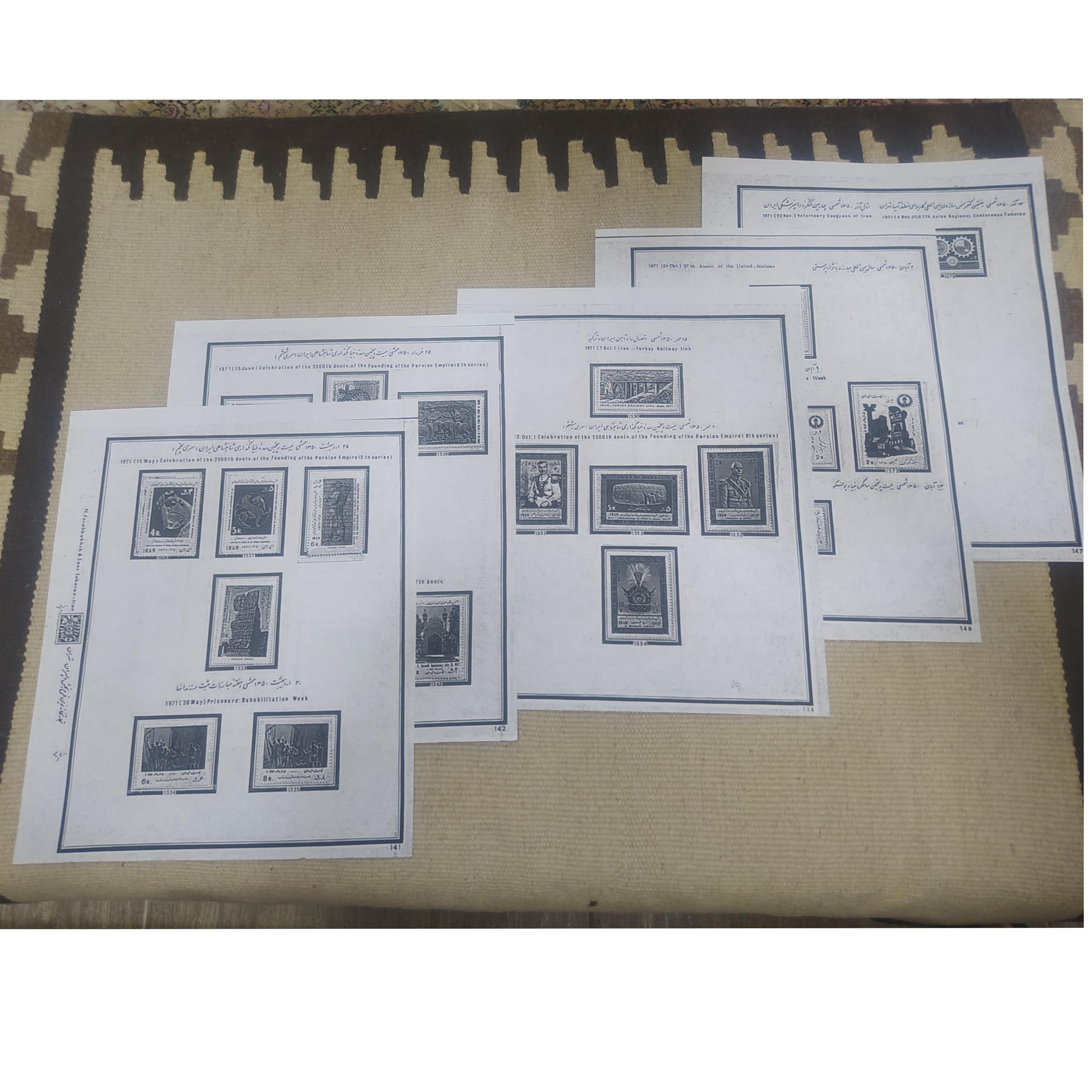 5برگ مصور خام , از تمبر دوران پهلوی سال1350 . بر روی کاغذ B4 که از کاغذ À4 بزرگتر میباشد اندازه برگه ها کاغذ به همان اندازه برگه های مقوایی آلبوم مصور میباشد
