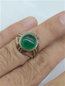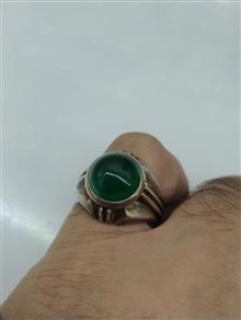 انگشتر عقیق سبز بسیار خوش رنگ و شفاف بدون نقطه / رکاب دست ساز سفارشی با مهر استاد داخل رکاب