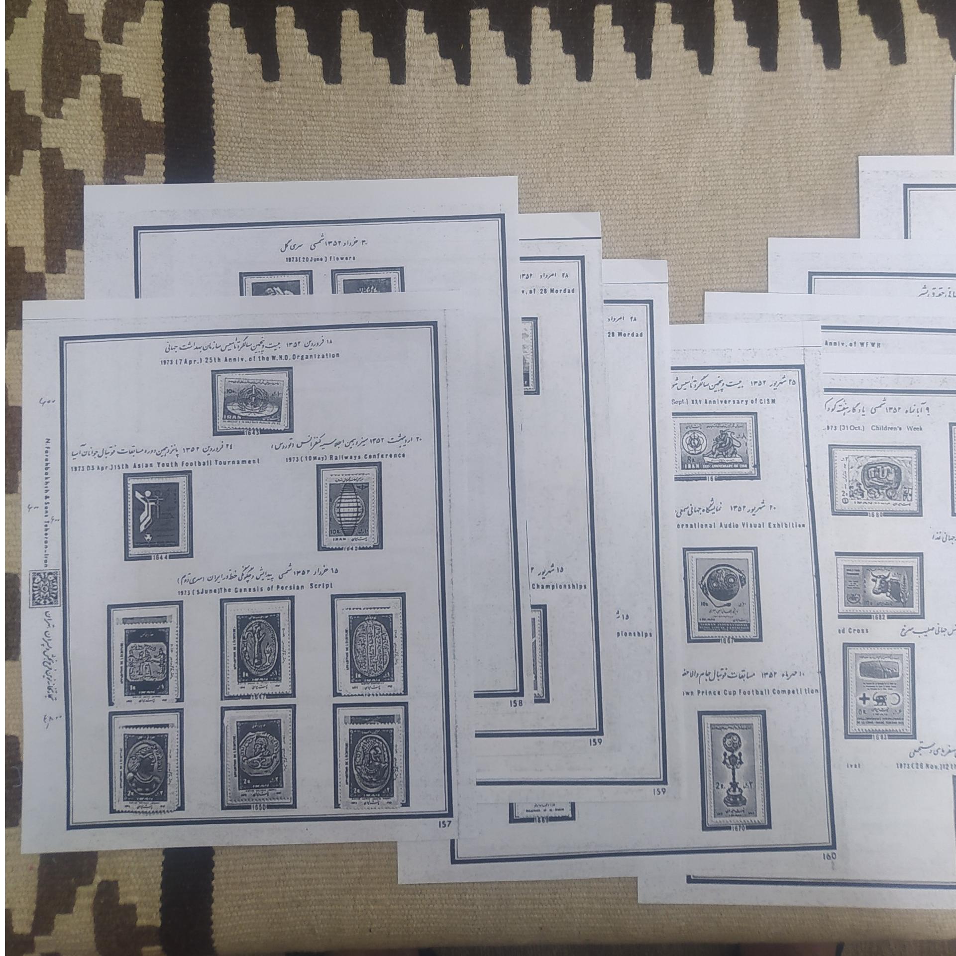 11برگ مصور خام , از تمبر دوران پهلوی سال1352 . بر روی کاغذ B4 که از کاغذ À4 بزرگتر میباشد اندازه برگه ها کاغذ به همان اندازه برگه های مقوایی آلبوم مصور میباشد
