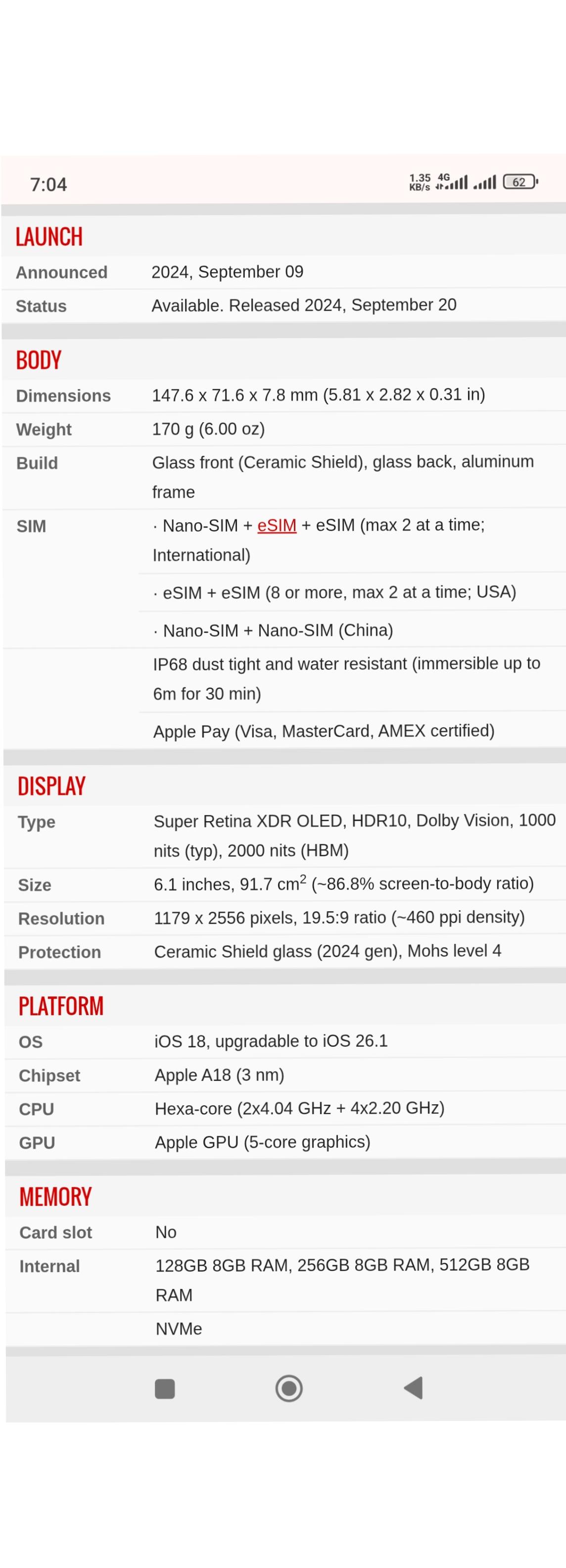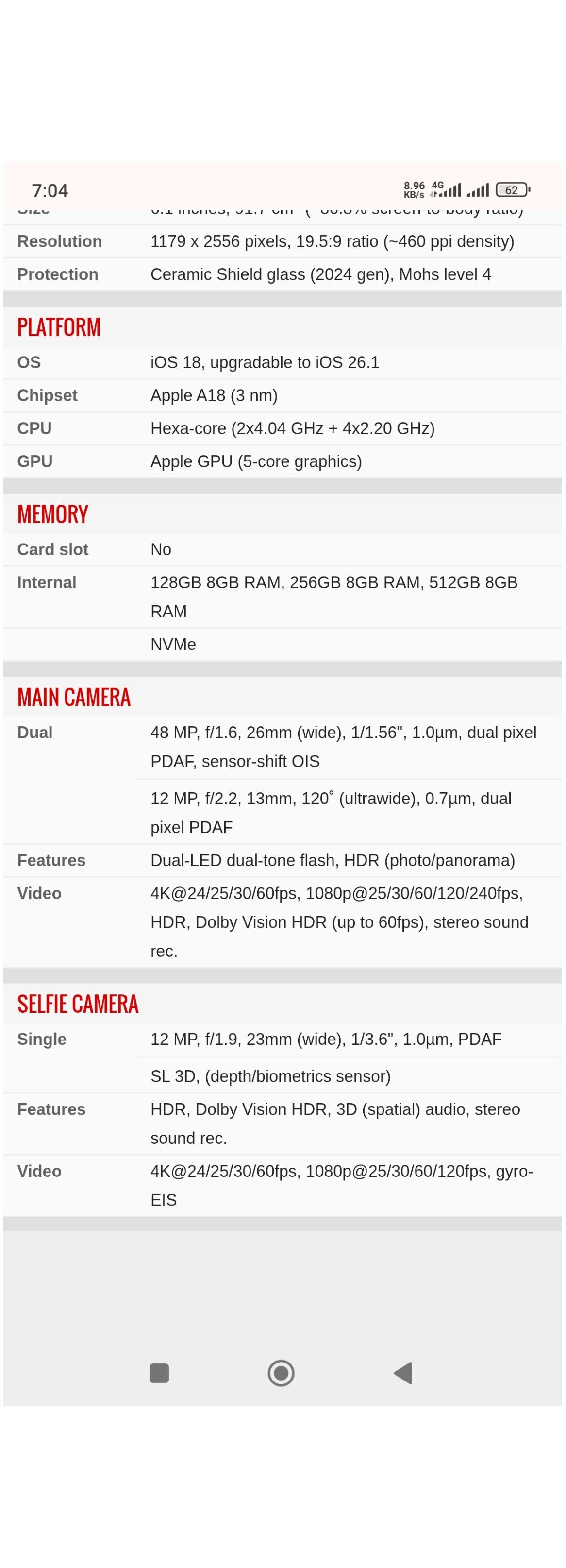 | اندازه صفحه نمایش (اینچ) | 6.1 اینچ |