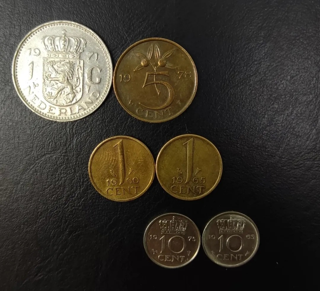پک 6 عددی سکه های زیبای هلند واحد سنت و گلدن هلند.