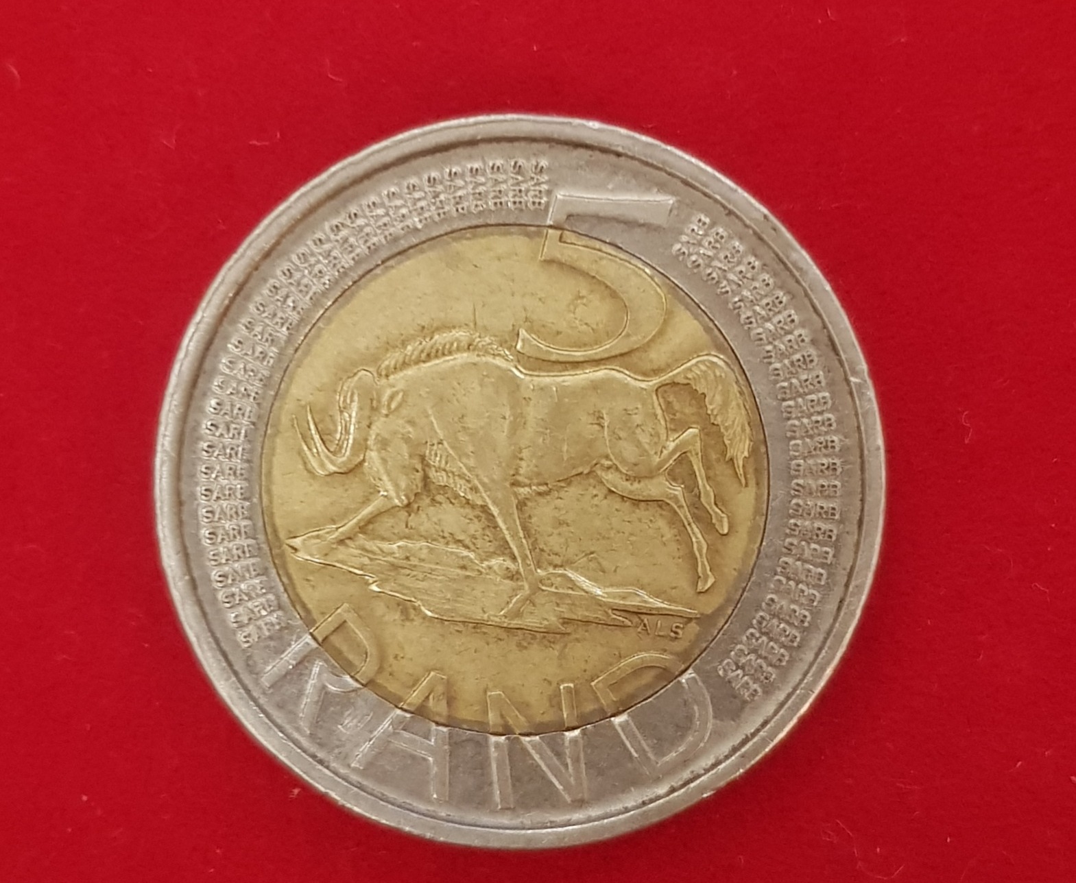 سکه دو رنگ زیبای 5 رند آفریقای جنوبی، طبق تصویر