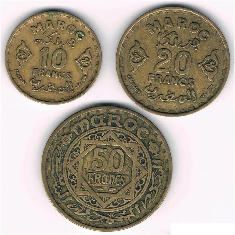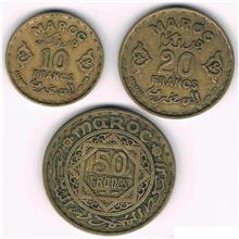 مجموعه سکه های 10 و 20 و 50 فرانک مغرب 1952 1371 (نایاب)