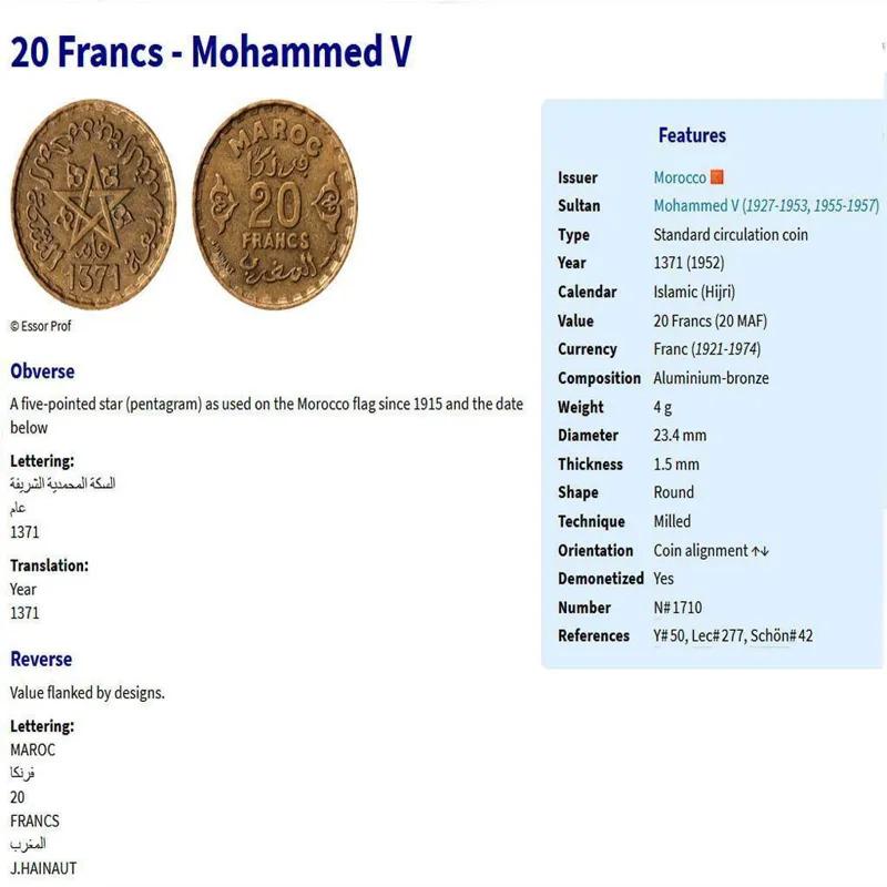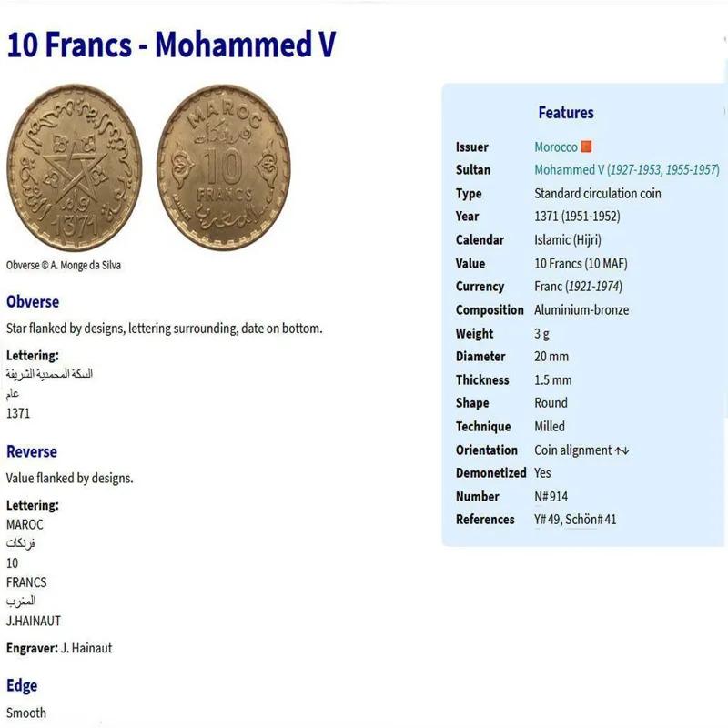 سکه های مراکش (مغرب) 1952 - 1371 (نایاب)