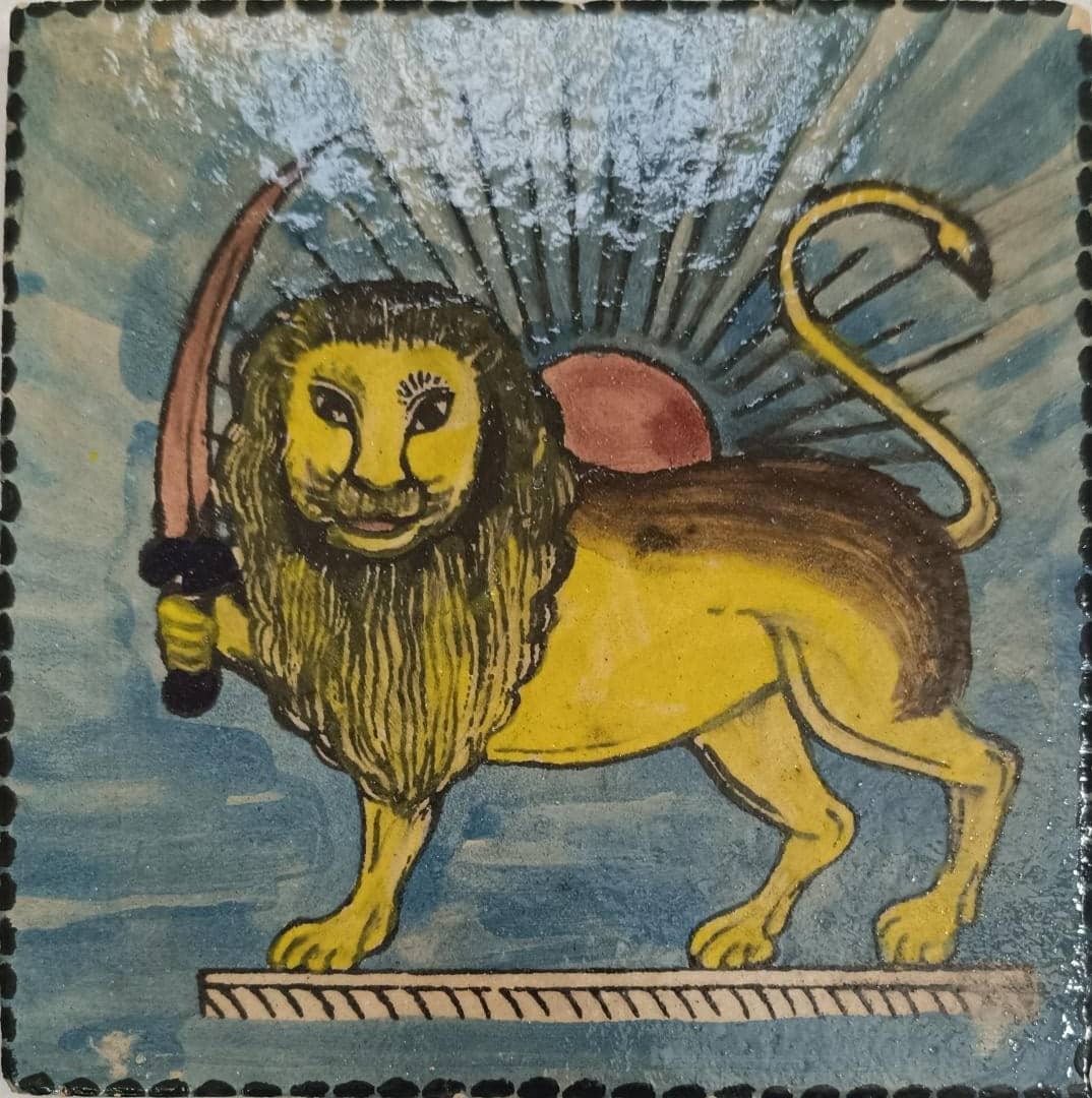 کاشی های قدیمی دست ساز با نقش شیر و خورشید ، ابعاد 20*20 ، ضخامت 2/5 سانت ، تمام مرحل ساخت و نقاشی و پخت و لعاب بصورت دستی انجام شده ، فروش بصورت تکی