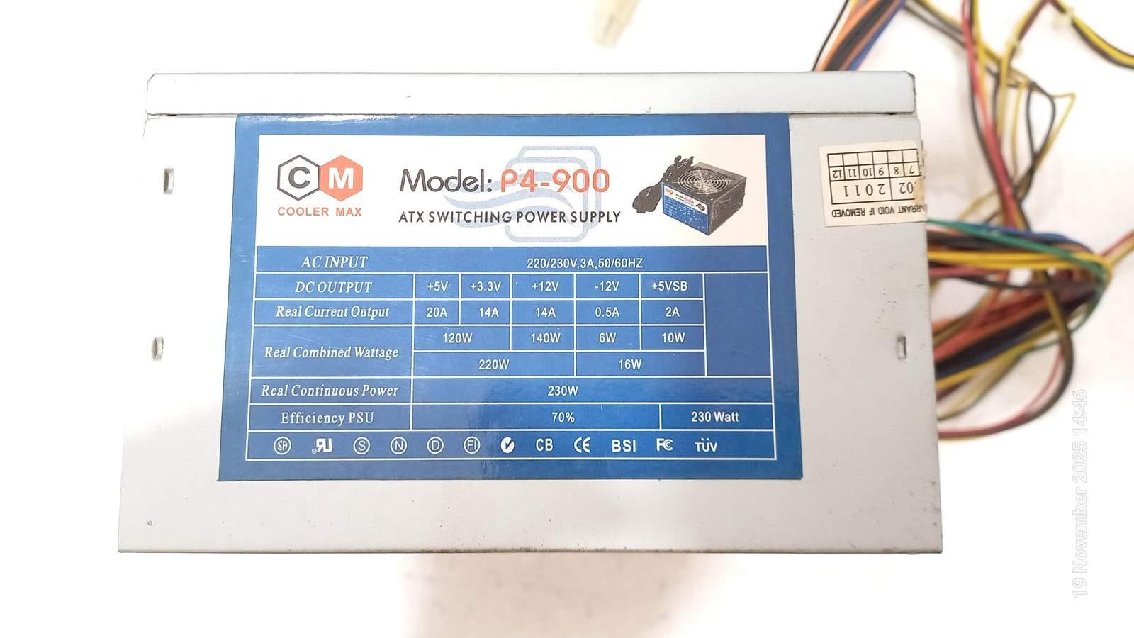 پاور Cooler Max P4-900 یک پاور 24 پین فن بزرگ میباشد که دارای 3 رابط برق IDE و 3 رابط ساتا است.