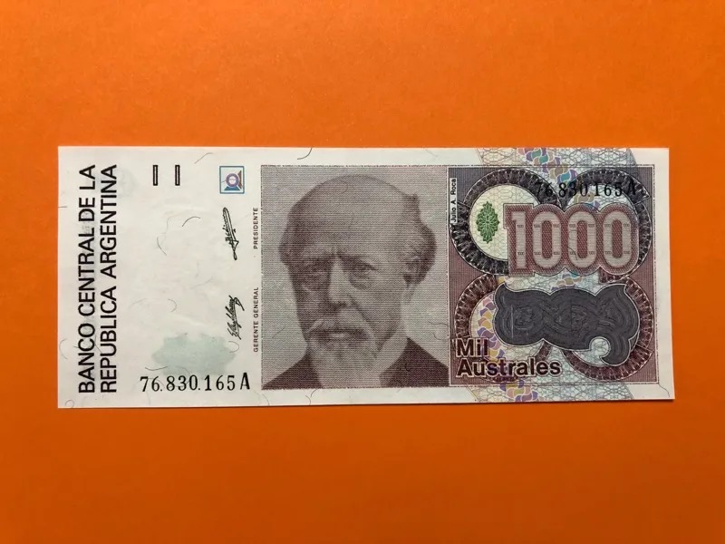 اسکناس تک بانکی 1000 آستارال آرژانتین شماره متفاوت
