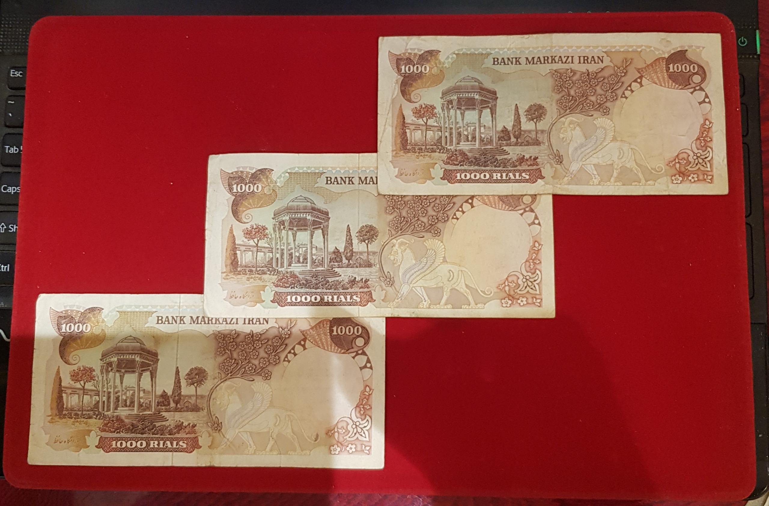 3 قطعه 1000 ریالی شونه پهن، امضاها: انصاری مهران، یگانه مهران و یگانه خوش کیش، طبق تصویر