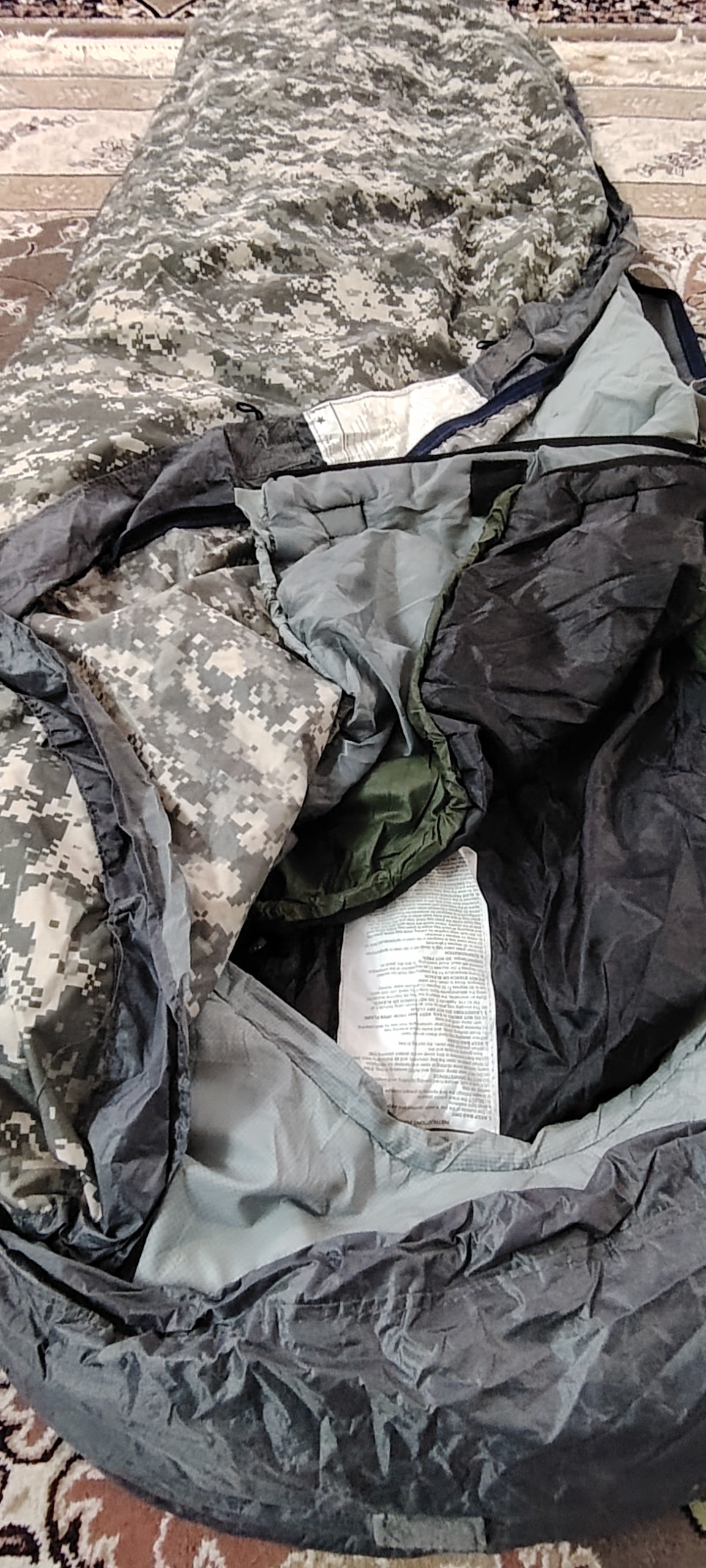 - کیسه خواب سه پوش آمریکایی دارای سه لایه مختلف میباشد که در صورت استفاده همزمان از سه لایه تا دمای -30 درجه براحتی قابل استفاده میباشد. لایه های داخلی هر کدام بصورت جداگانه نیز قابل استفاده است و با خرید یک کیسه خواب سه پوش میتوانید در دماهای صفر درجه بعنوان دو کیسه خواب استفاده کنید. دارای یک پوش بهاره، یک پوش زمستانه و یک پوش گورتکس. دارای دو کیف مجزا در سایزهای مختلف جهت حمل یک پوش یا هر سه پوش با هم و هر سه پوش این کیسه خواب قابلیت استفاده بطور مجزا را دارا می باشد. مناسب برای محدوده دمایی بین: 10 الی -45 درجه سانتیگراد. دارای کاور مخصوص که کیسه خواب داخلش جمع میشود و یک کاور اضافه برای استفاده جداگانه از لایه ها میباشد. لایه رویه رنگ استتار از جنس گرتکس بوده و صد درصد ضد آب حتی در برابر بارش باران و پوشش درز زیپها نیز انجام شده است. لایه های سبز و مشکی دارای رویه ریپ استاپ بوده و سیستم تنفسی بدن رو تنظیم و مانع تعریق میشوند .جنس داخلی از الیاف با تراکم بالا بوده و دارای زیپهای با کیفیت و درجه یک میباشد.
