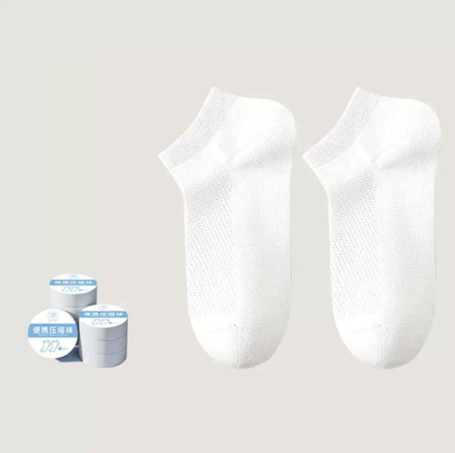 جوراب مسافرتی مدل قرصی یک کالای شیک و کاربردی است. این بسته شامل یک جفت جوراب کشی بدون ساق است. این جوراب به صورت فشرده بسته بندی شده است و جای بسیار کمی می گیرد. می توان چند عدد از آن ها را در کیف، جیب و ... گذاشت و استفاده کرد.