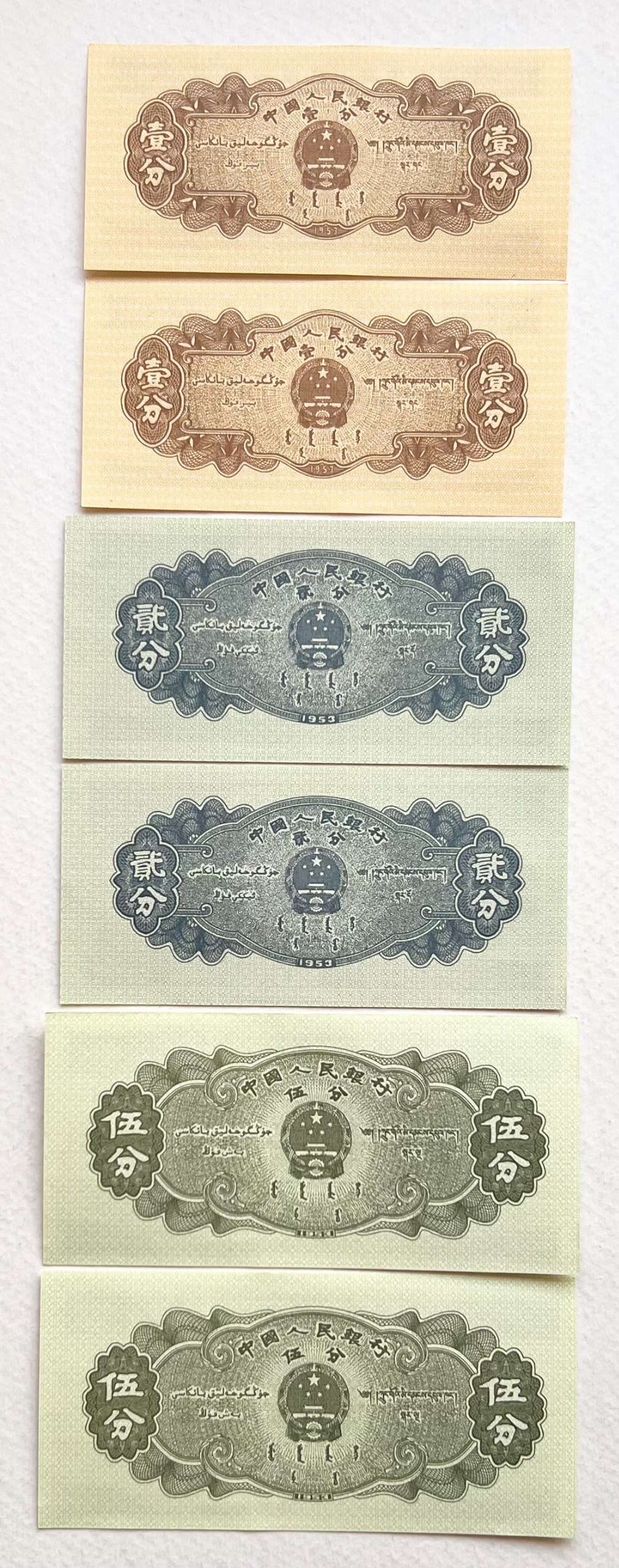 ست جفت اسکناس خارجی 1، 2 و 5 فن چین (1953)